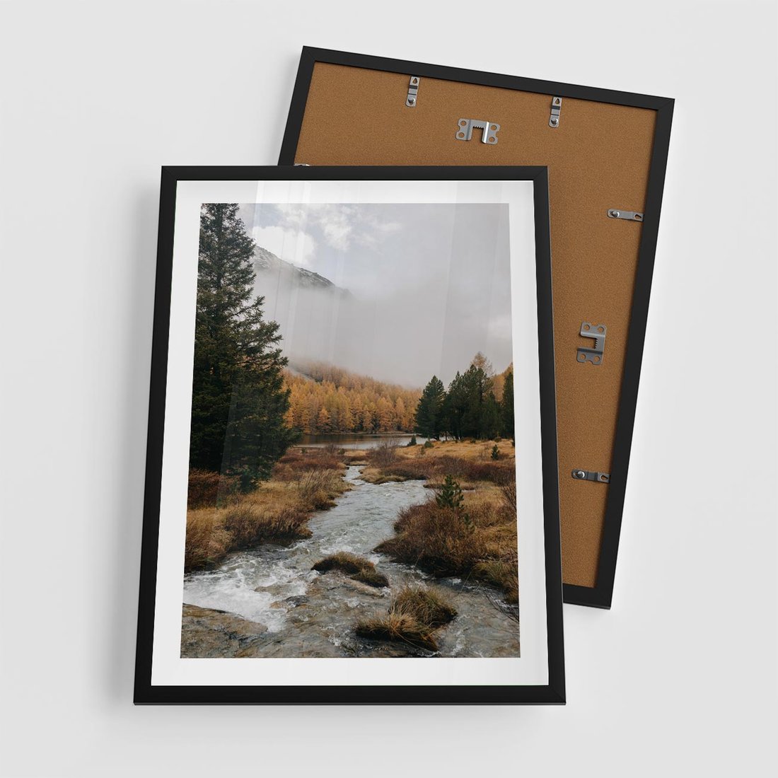 Plakat w ramie 50x70 - W Górskiej Dolinie - artystyczna fotografia, las - rama czarna