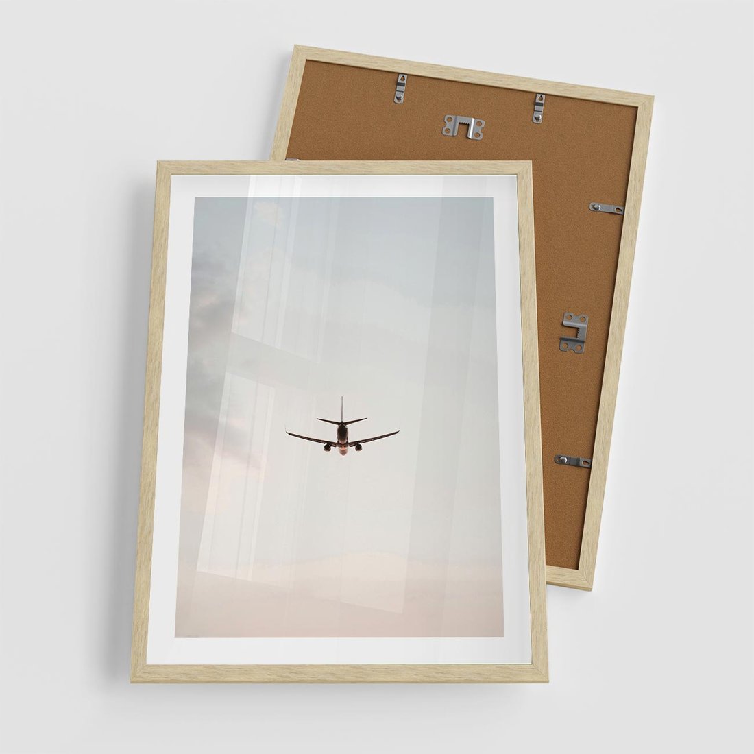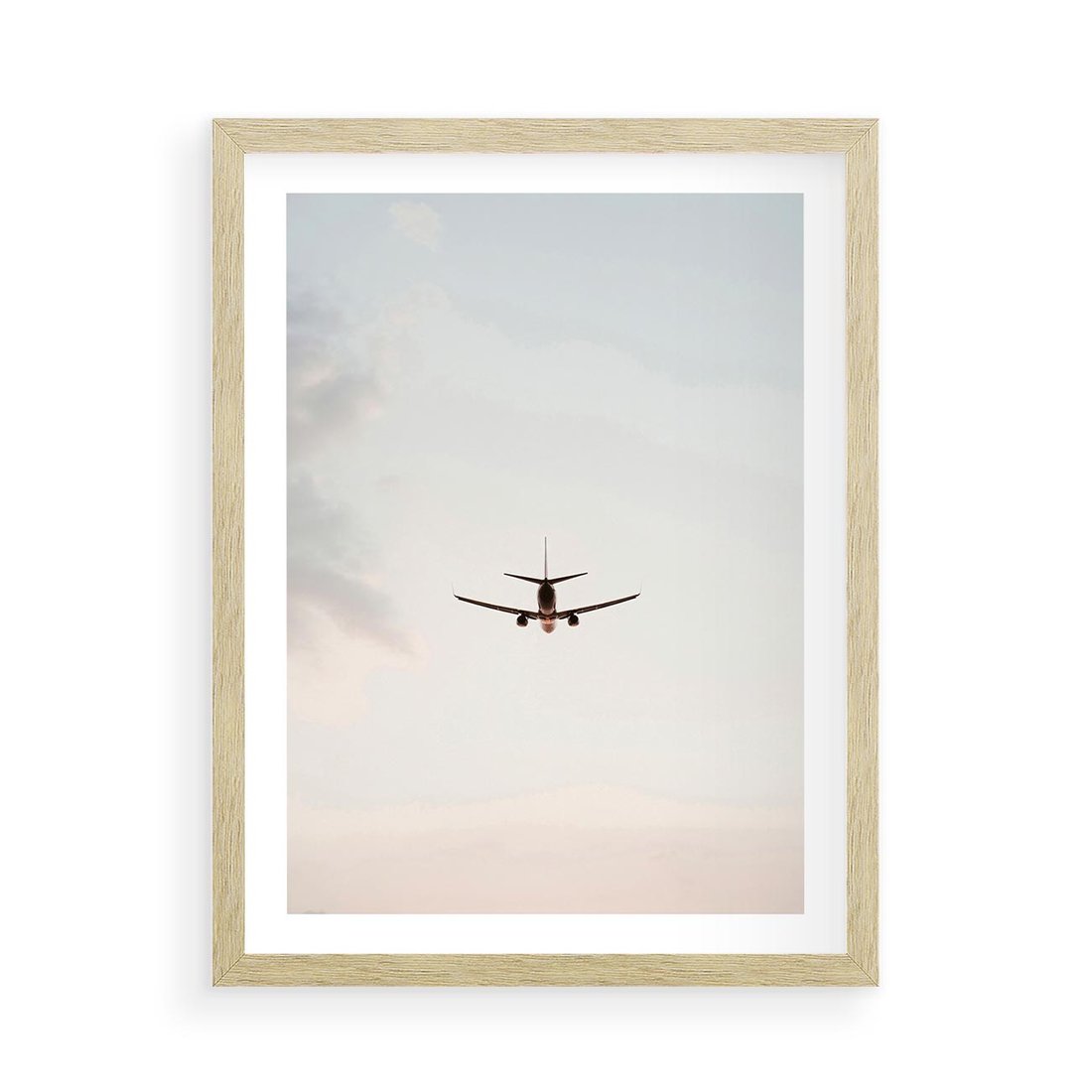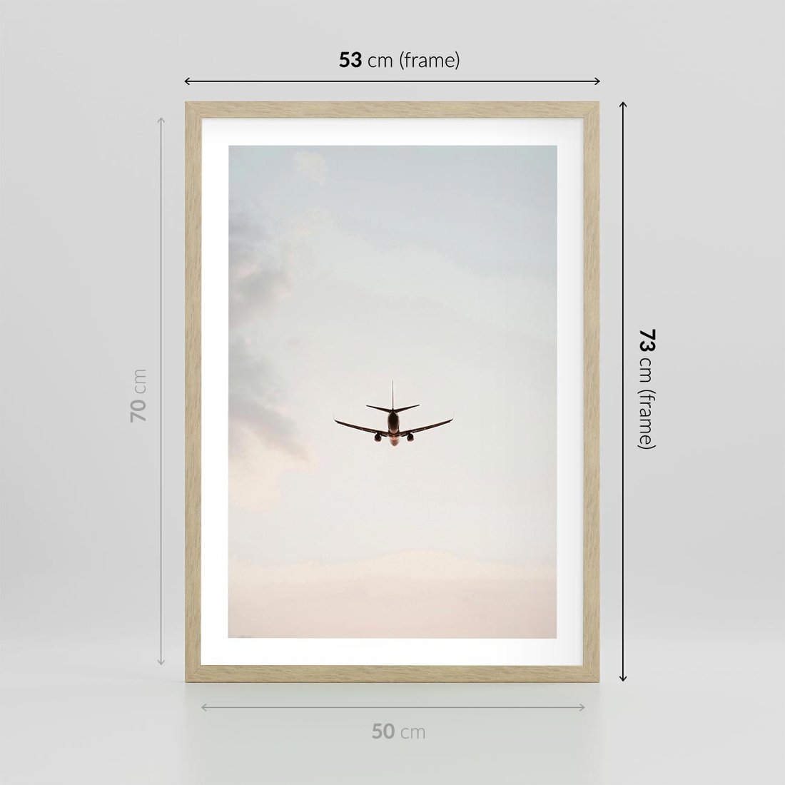 Plakat w ramie 50x70 - W Powietrzu: Samolot na Niebie - samolot w przestworzach, samolot na niebie - rama drewno
