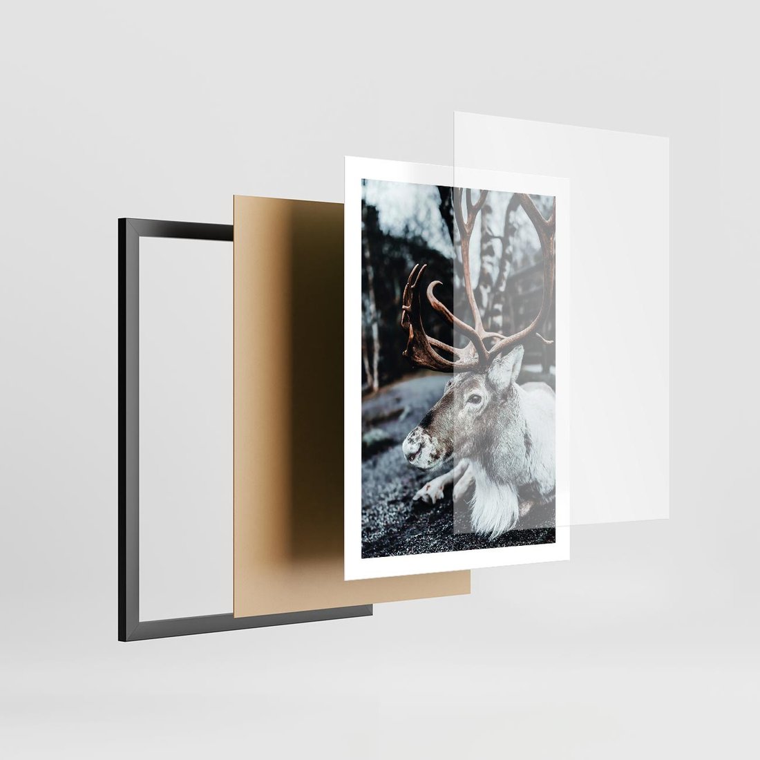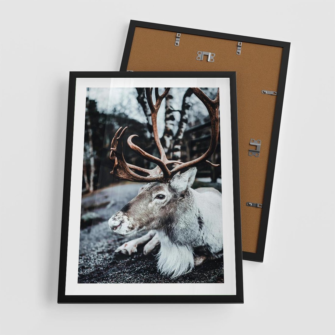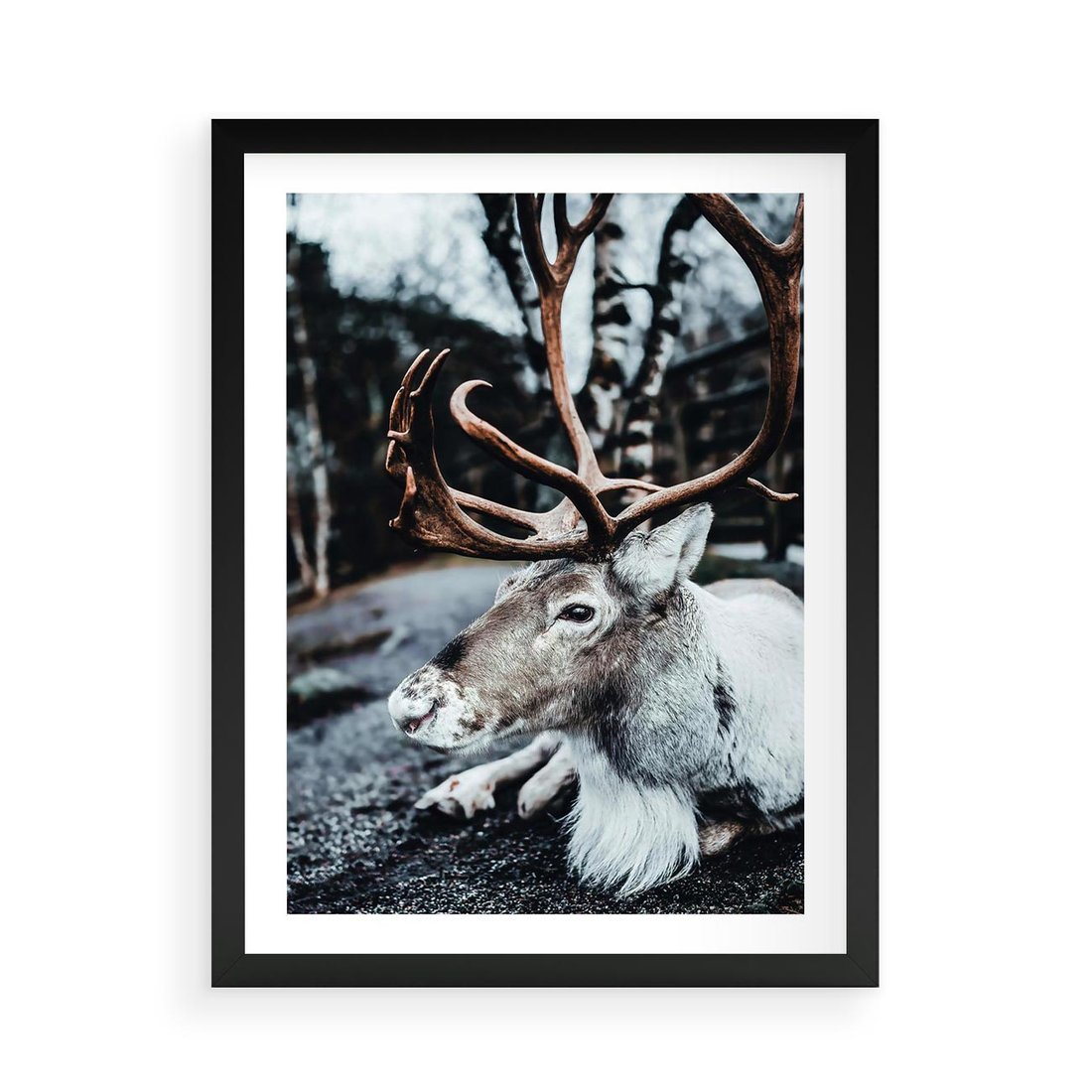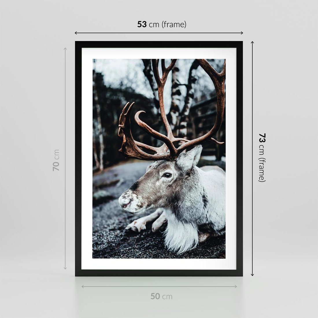 Plakat w ramie 50x70 - W Zimowej Krainie - renifer, zima - rama czarna
