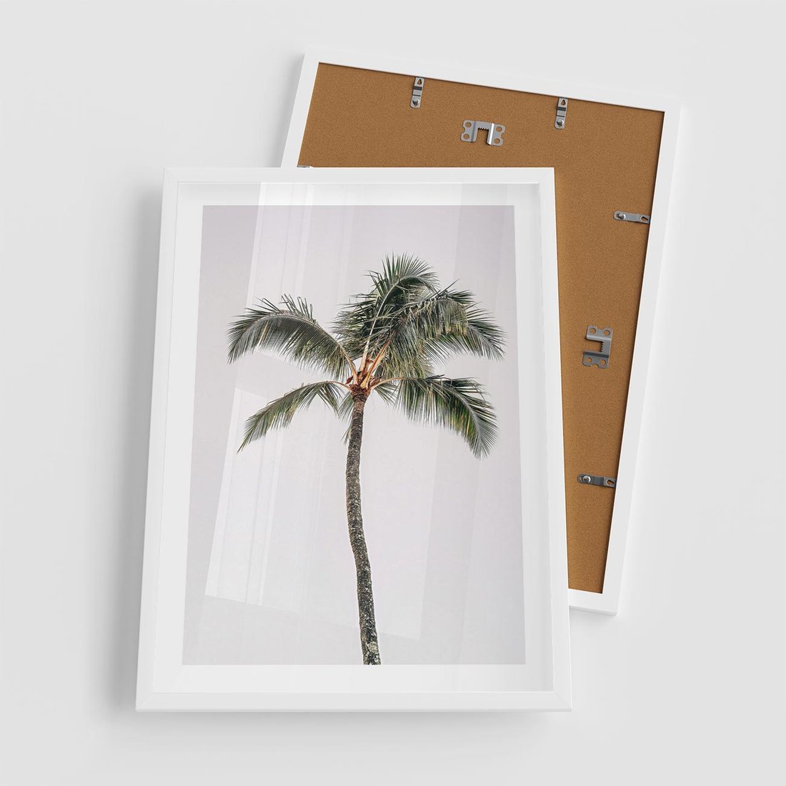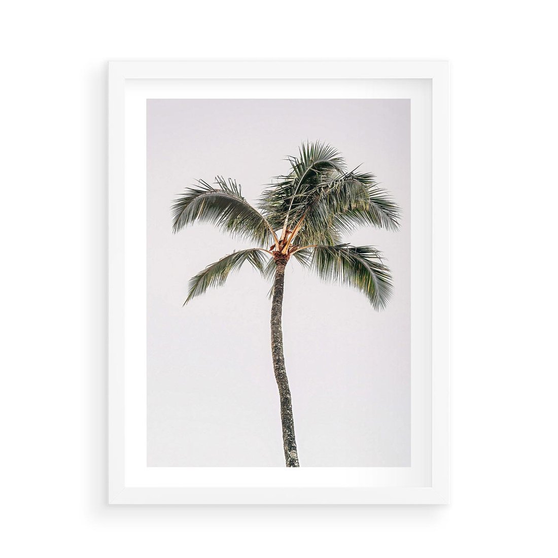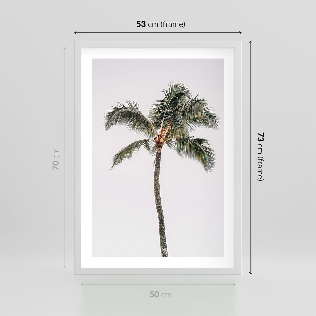 Plakat w ramie 50x70 - Wakacyjne Marzenia - palma na tle nieba - rama biała
