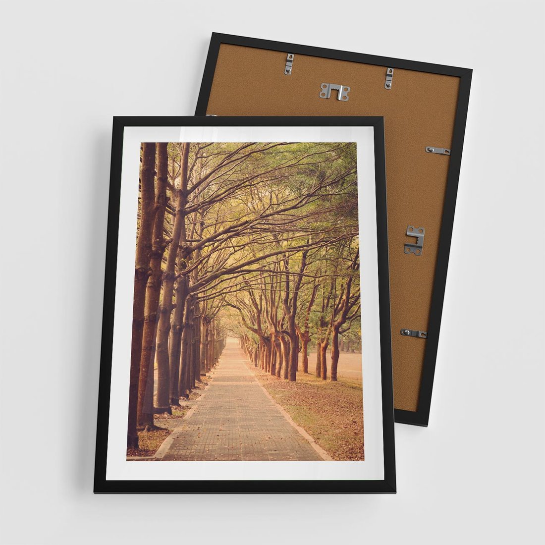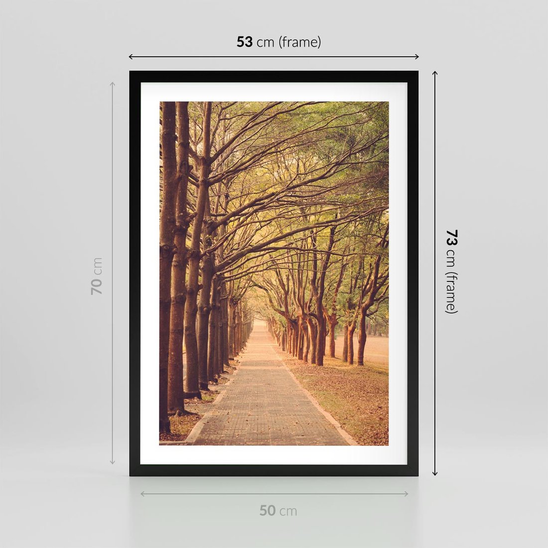 Plakat w ramie 50x70 - Wędrówka między drzewami - droga, drzewa - rama czarna