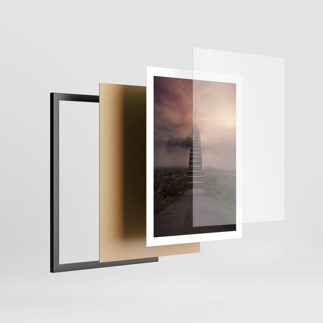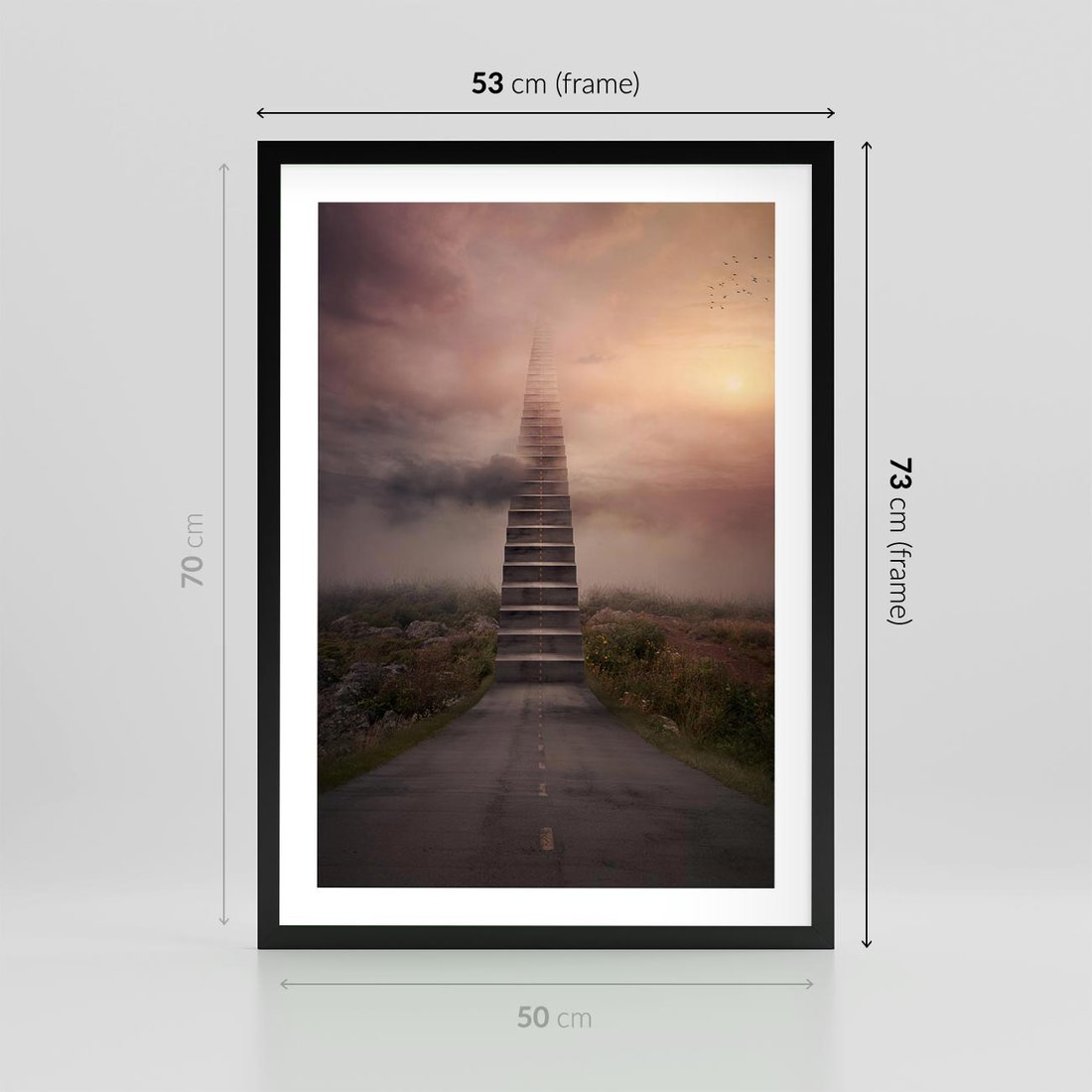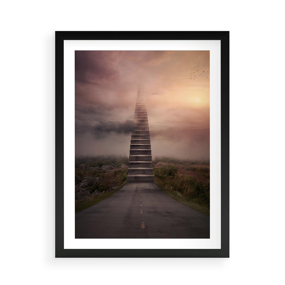 Plakat w ramie 50x70 - Wędrówka po malowniczej drodze - droga, schody - rama czarna