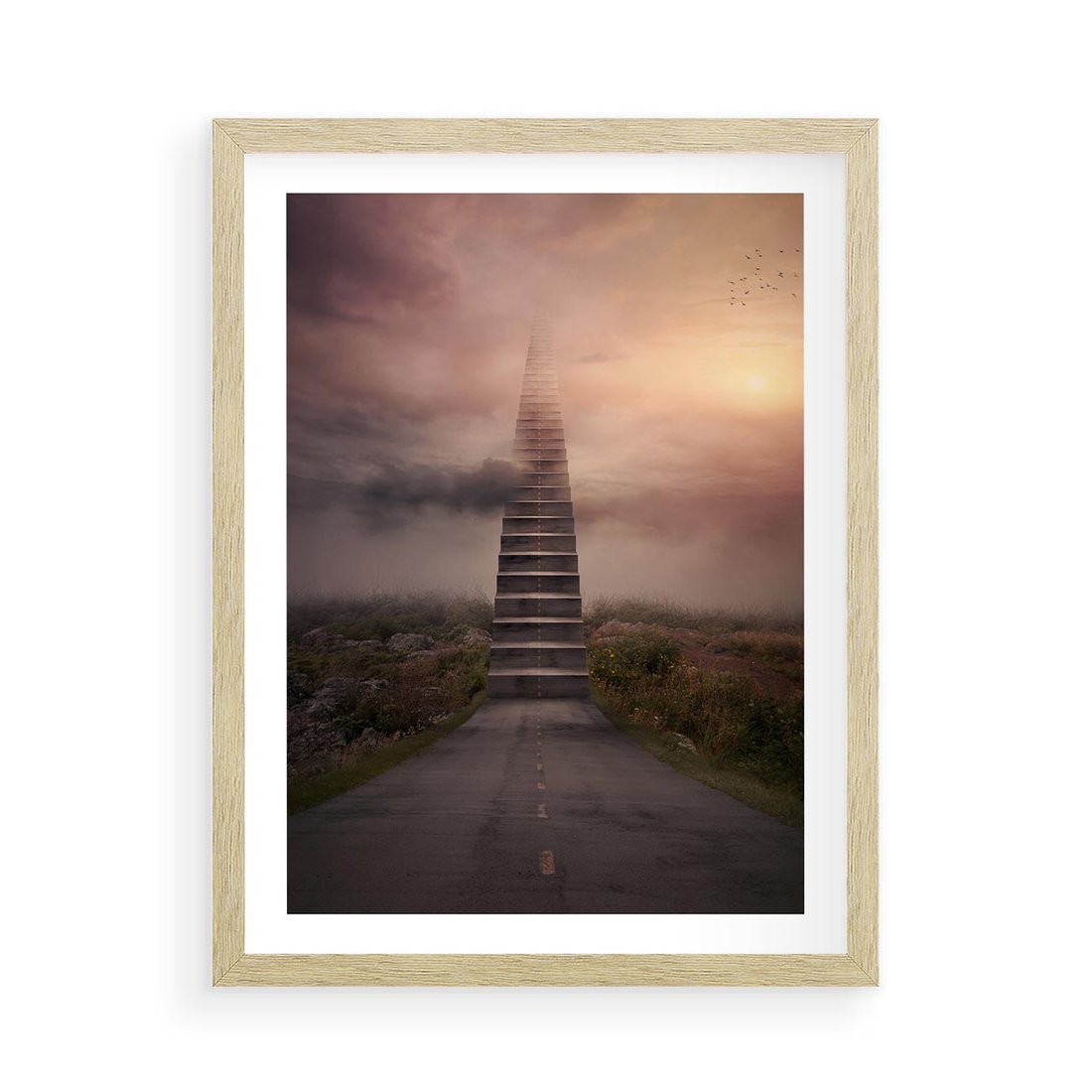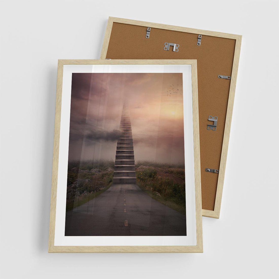 Plakat w ramie 50x70 - Wędrówka po malowniczej drodze - droga, schody - rama drewno