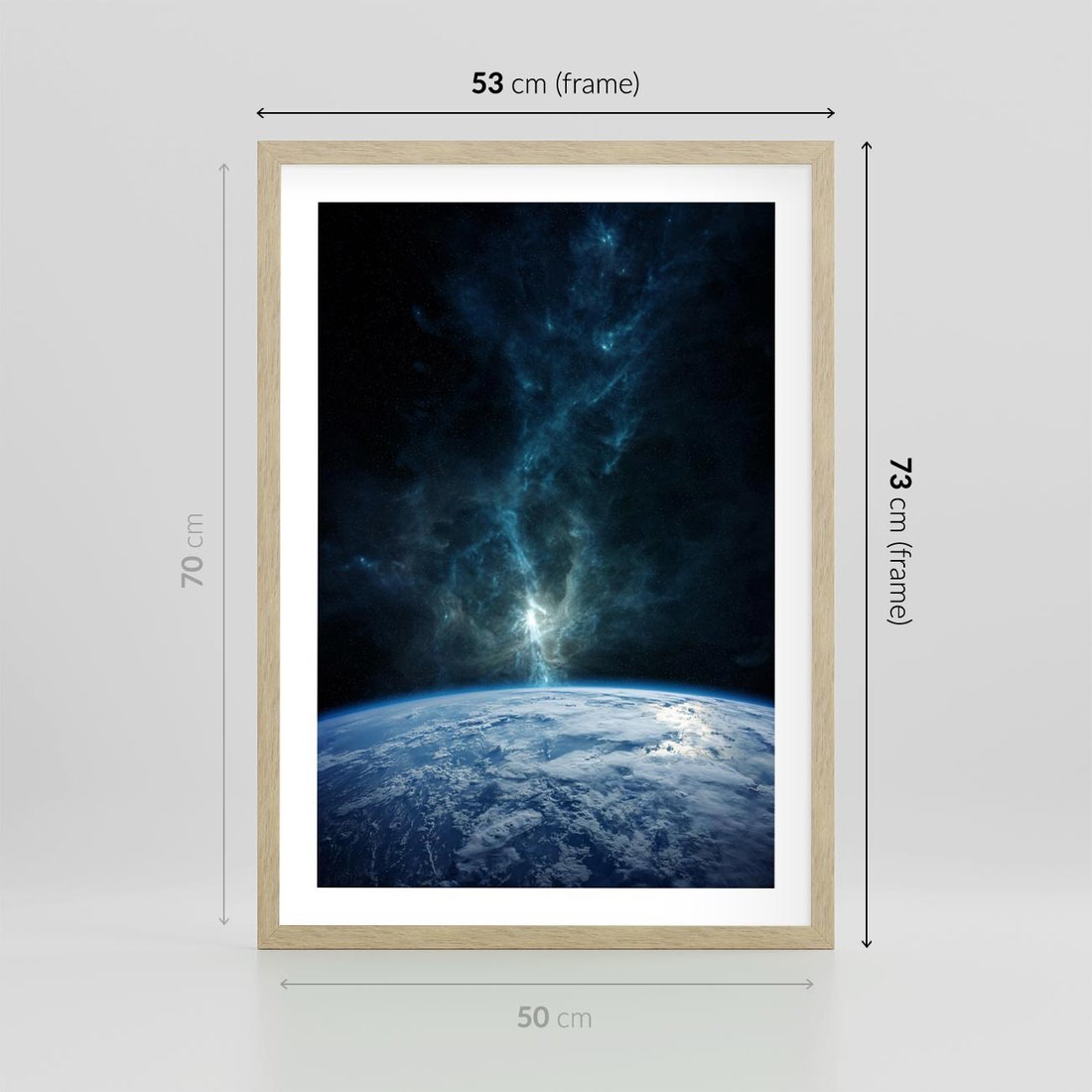 Plakat w ramie 50x70 - Wędrówka przez galaktyki - ziemia, kosmos - rama drewno