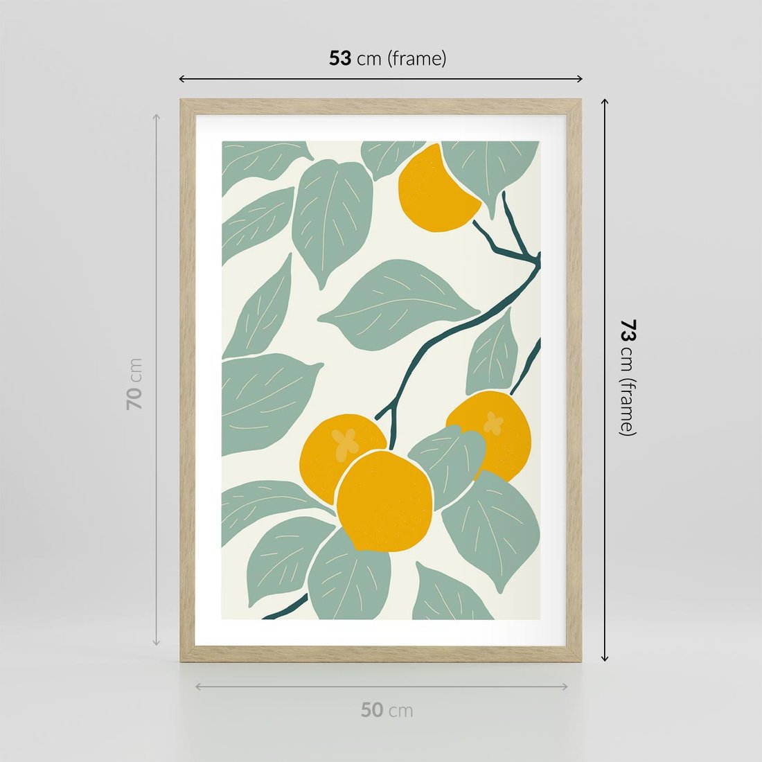 Ten plakat w nowoczesnym stylu jest idealnym dodatkiem do Twojej kuchni lub jadalni. Ukazuje soczyste cytryny i zielone liście, wprowadzając w tę przestrzeń świeżość natury i estetykę nowoczesności.