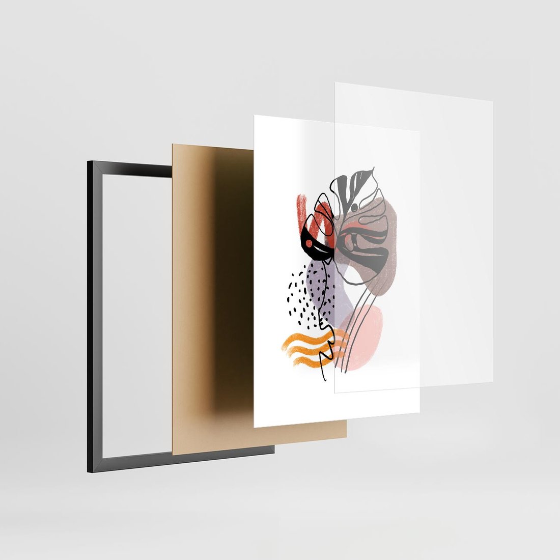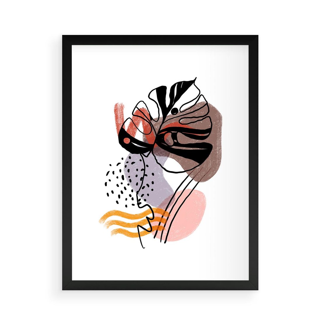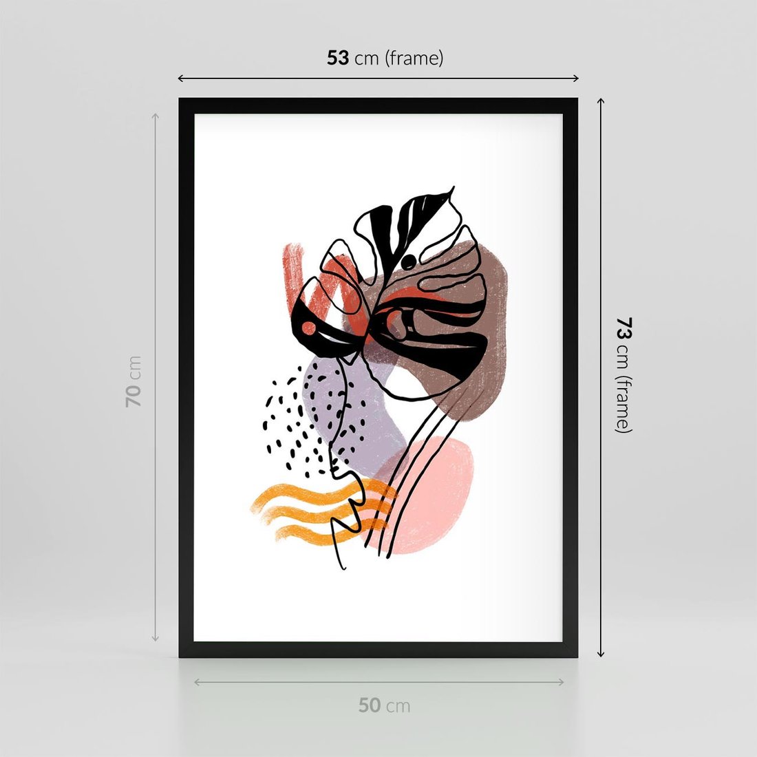 Plakat w ramie 50x70 - Wibracje Abstrakcyjnych Form - abstrakcyjna sztuka, liść monstery - rama czarna