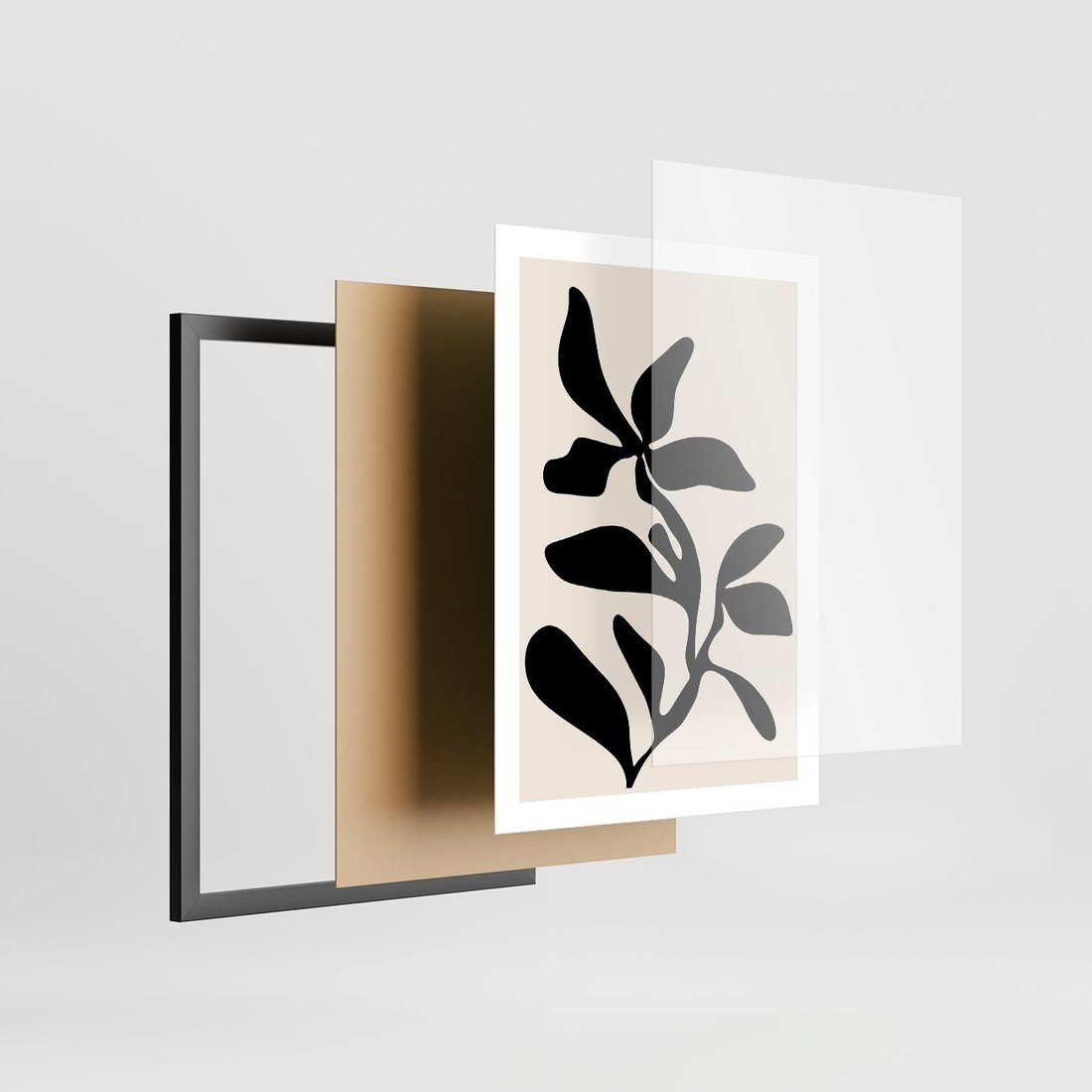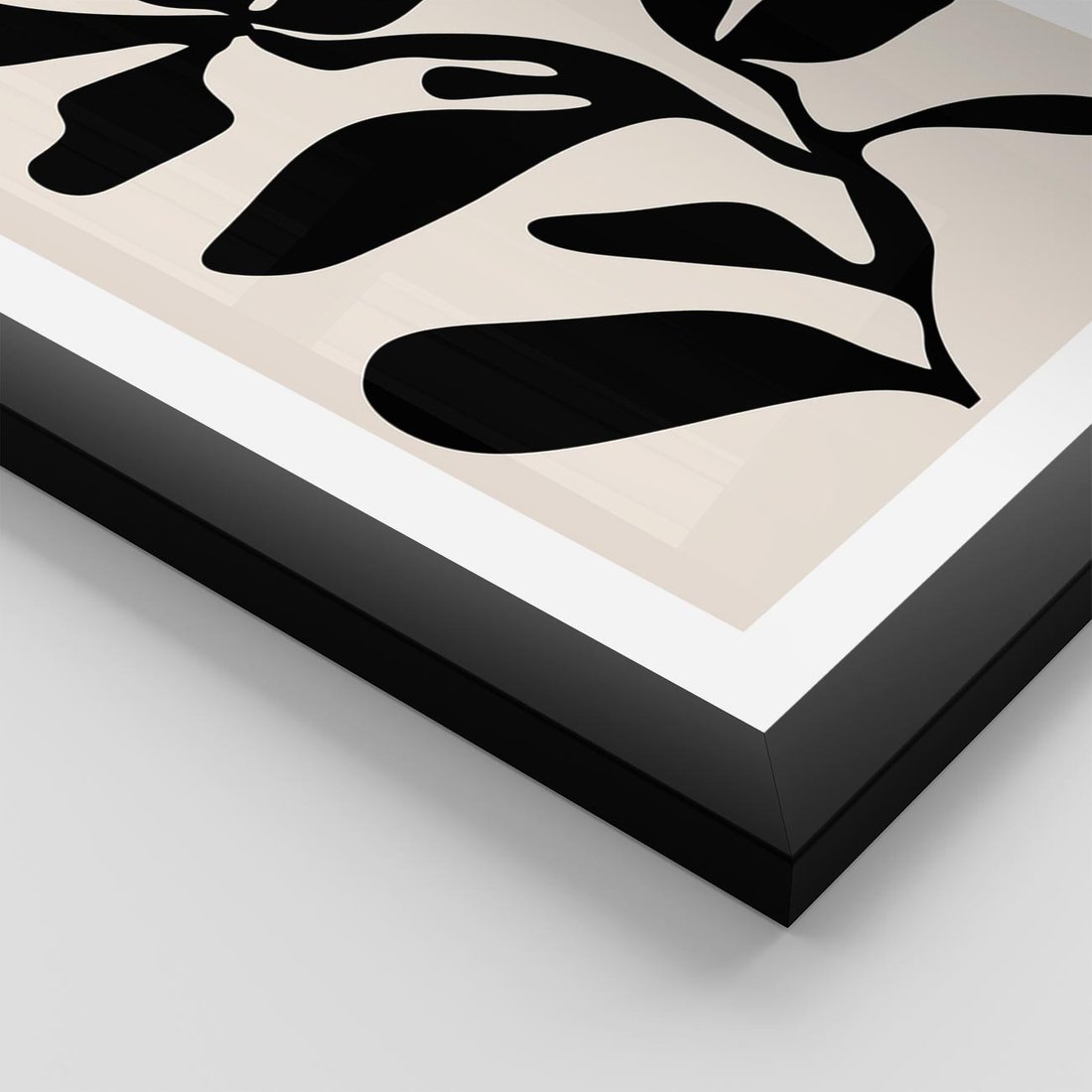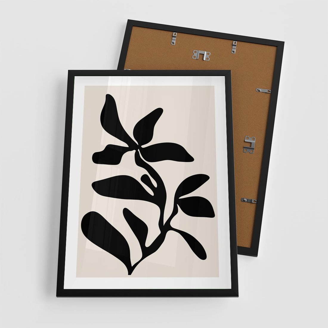 Ten abstrakcyjny minimalistyczny plakat przedstawia delikatny kwiat w kontrastujących odcieniach czerni i bieli. To wyraz nowoczesnej sztuki, który dodaje subtelności i elegancji do przestrzeni.