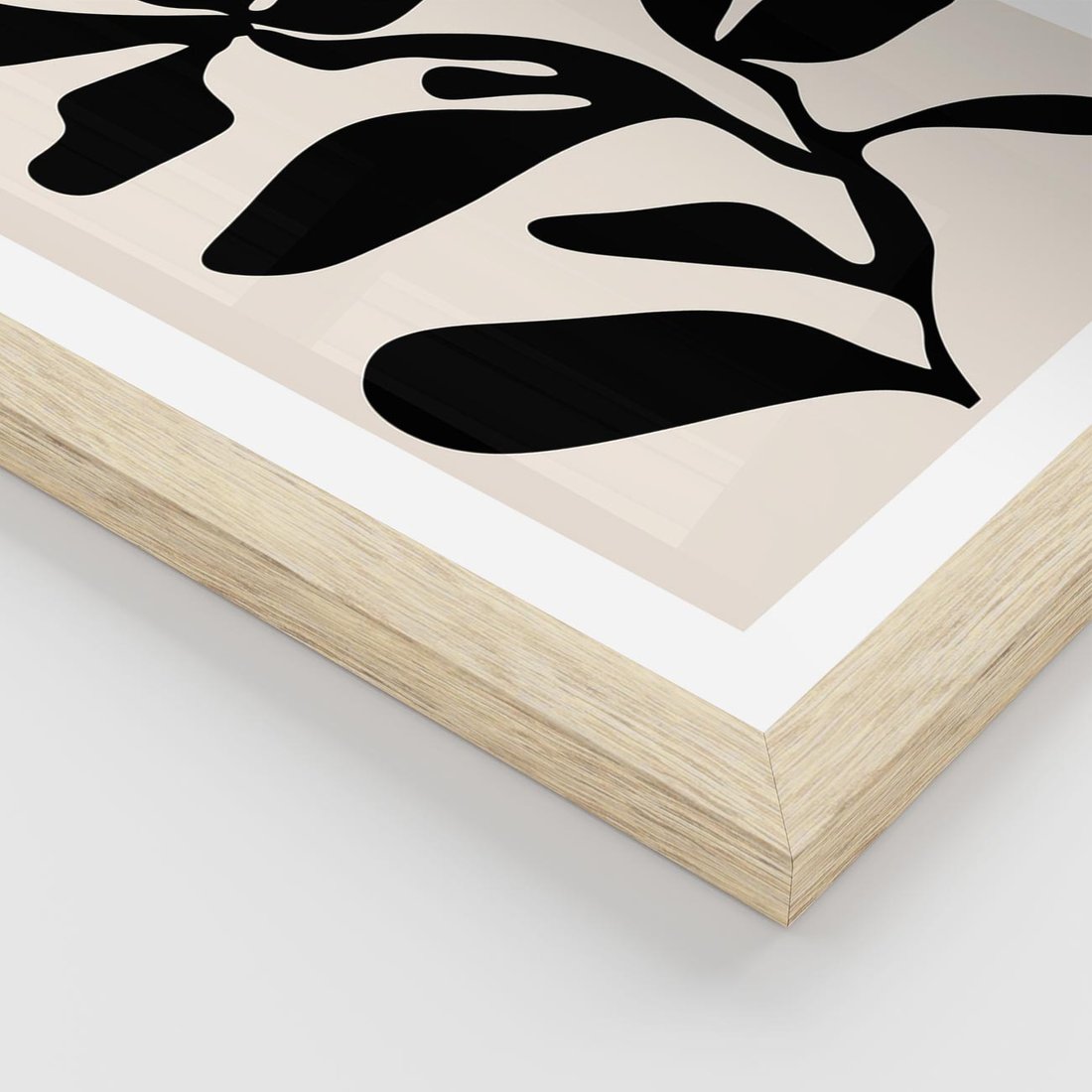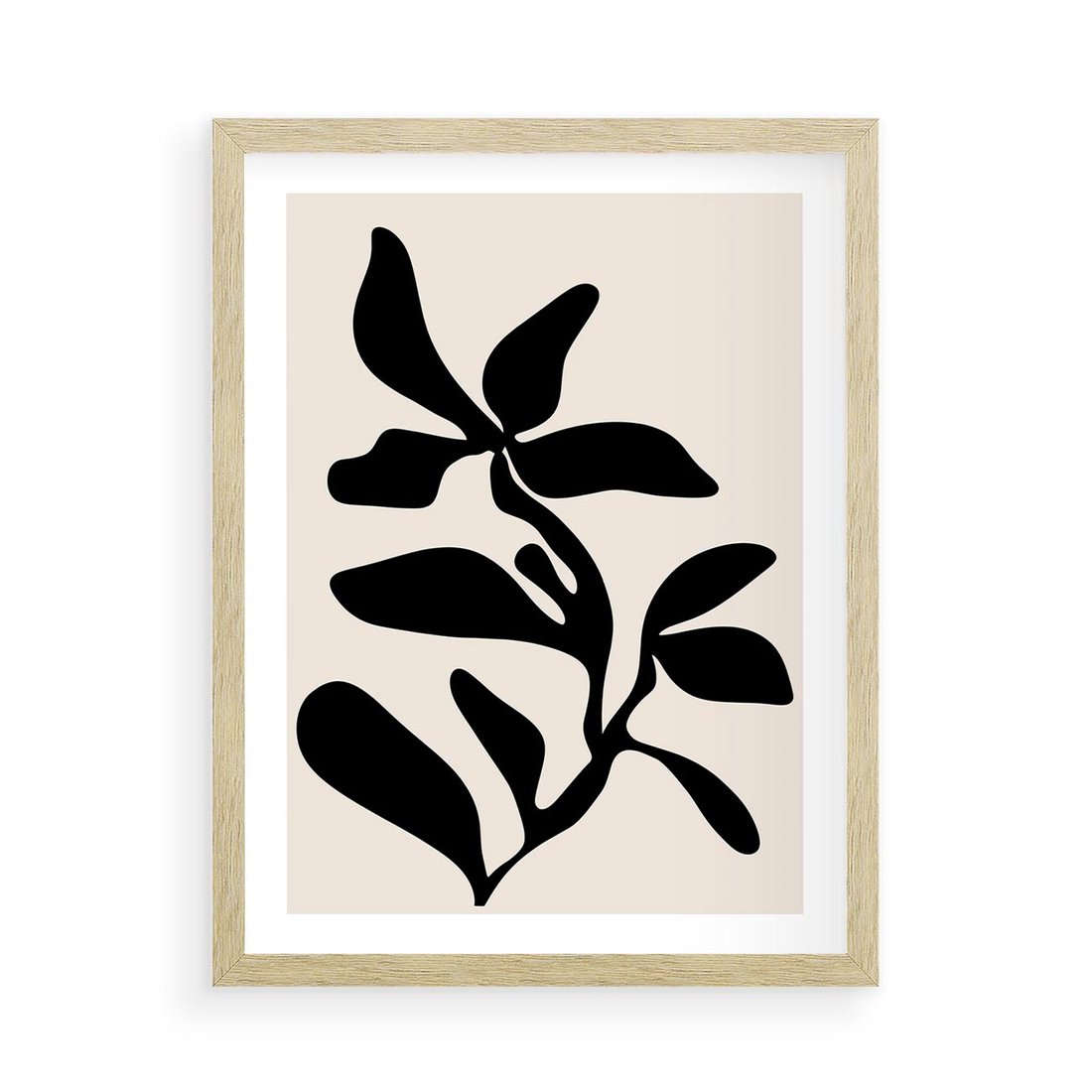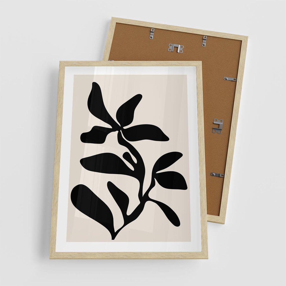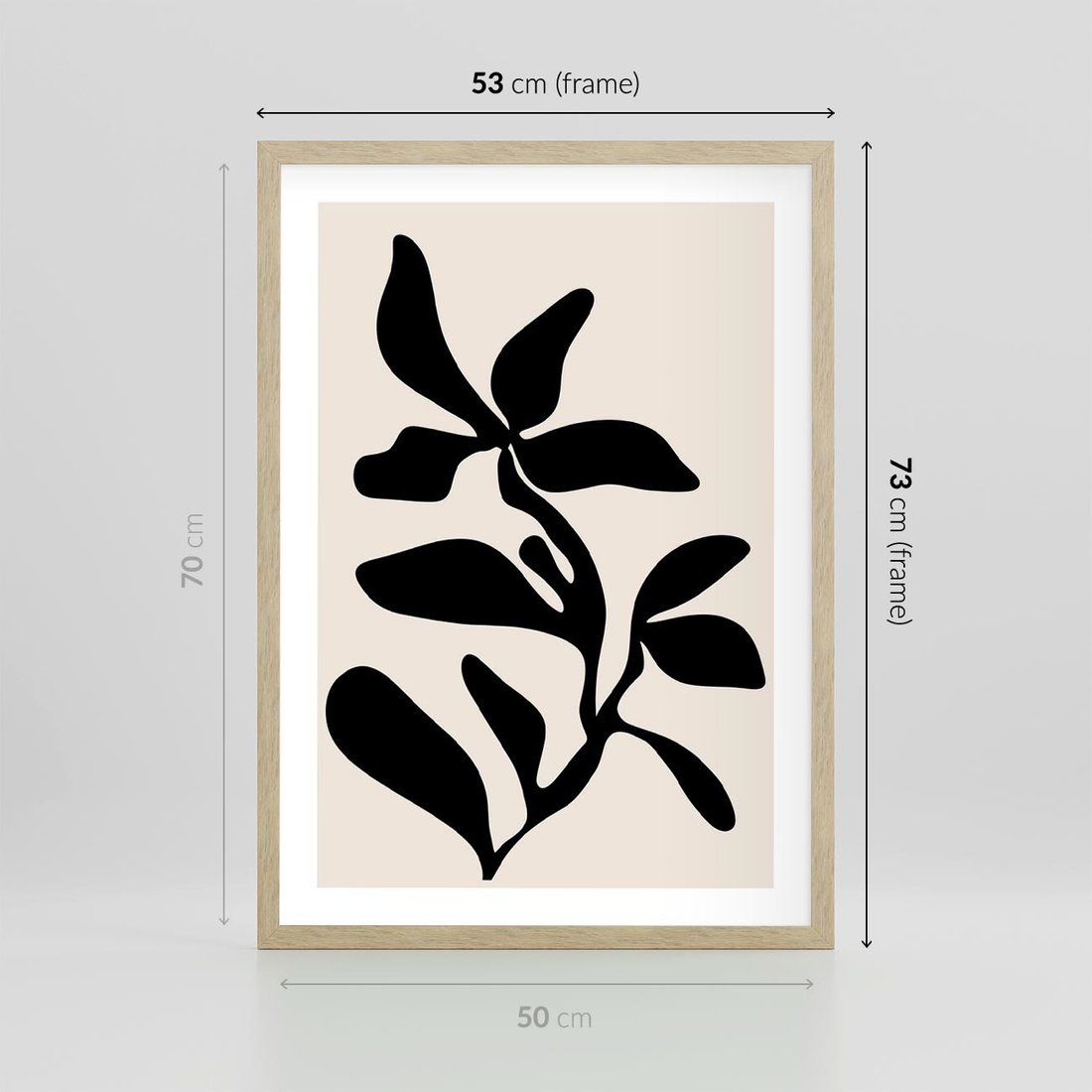 Plakat w ramie 50x70 - Wibracje Akwarelowych Ścieżek - abstrakcyjny minimalistyczna kwiat, czarno biały plakat - rama drewno