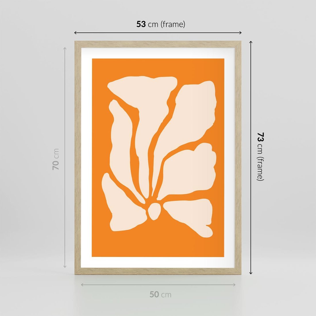 Plakat w ramie 50x70 - Wibracje Barw - abstrakcyjny boho plakat, pomarańczowe tło - rama drewno