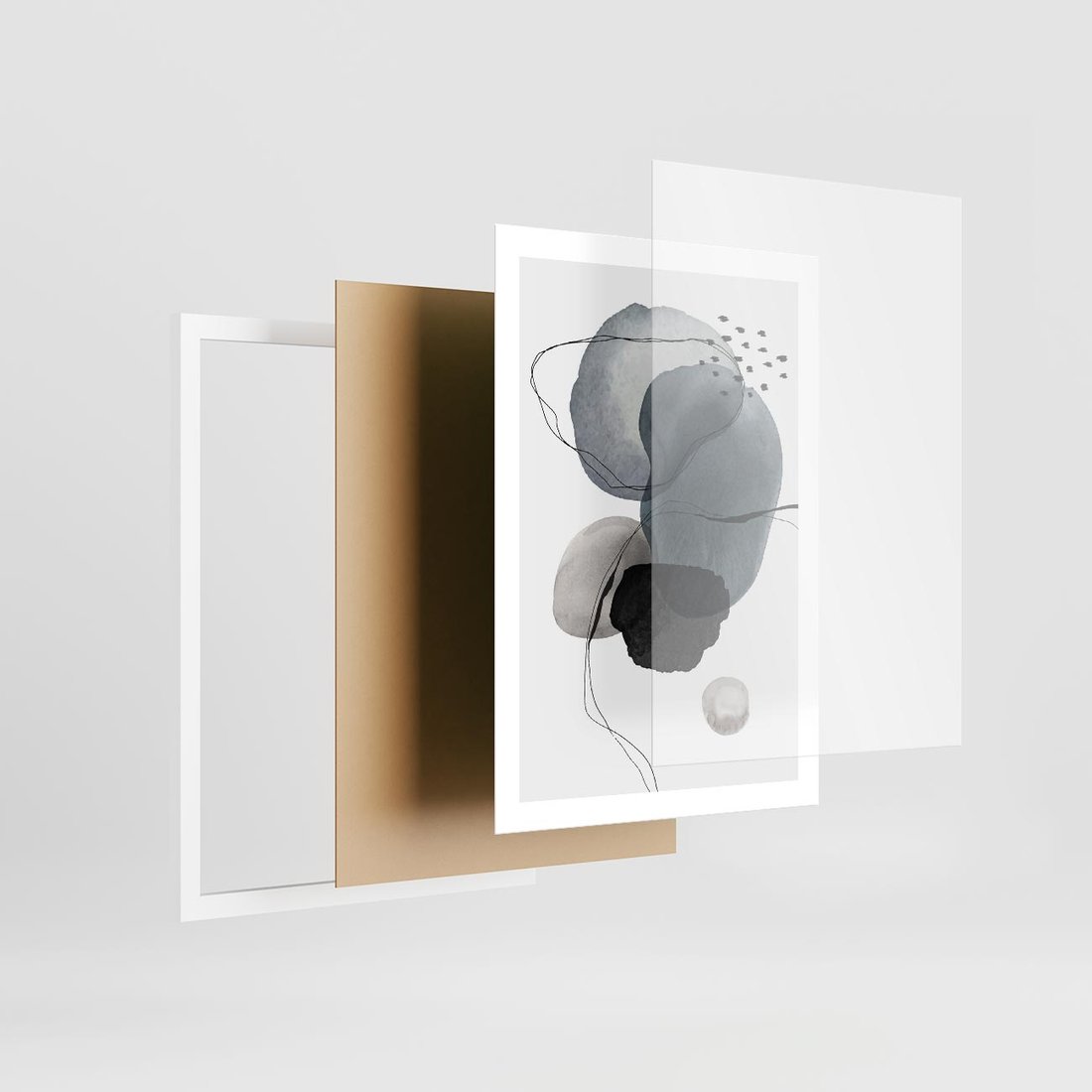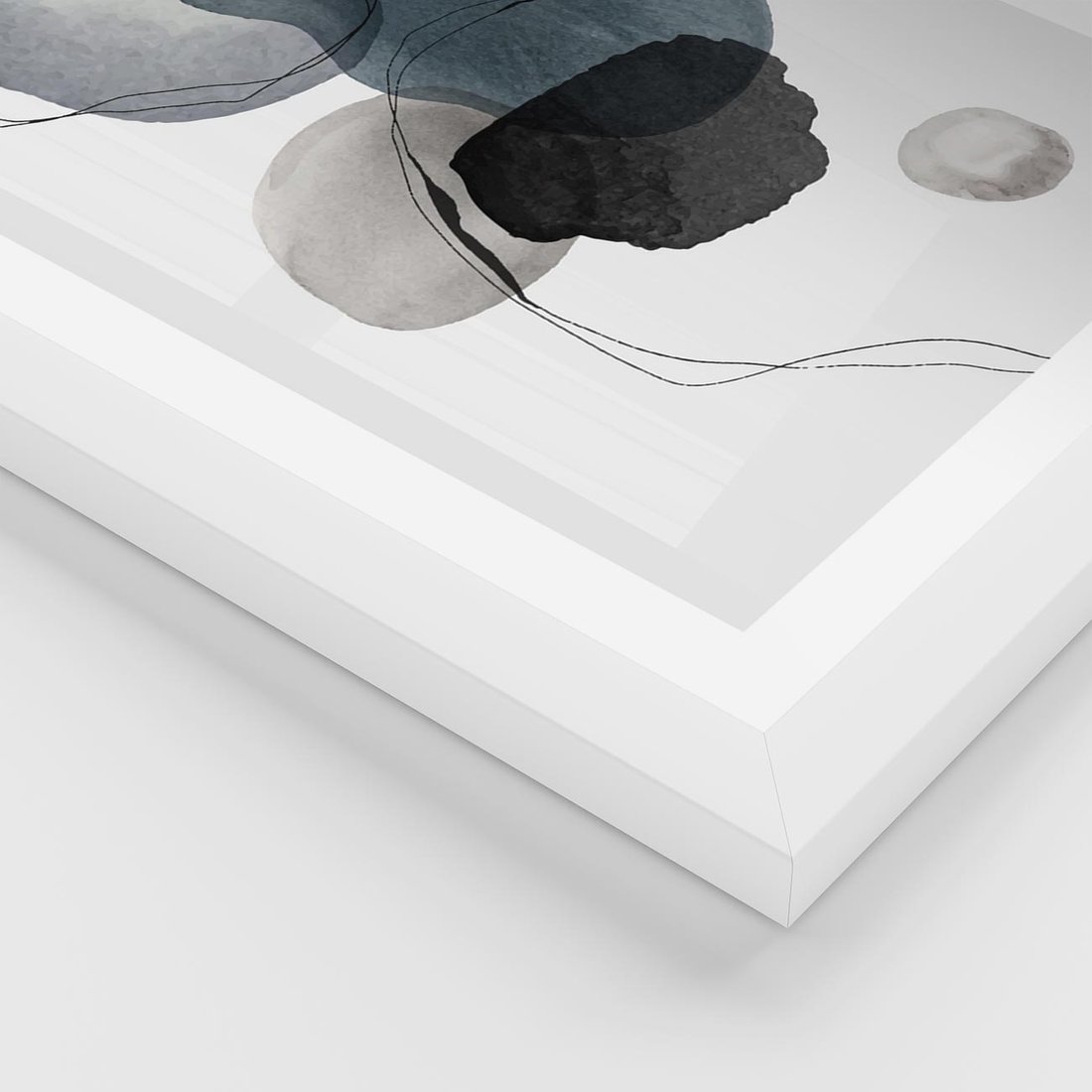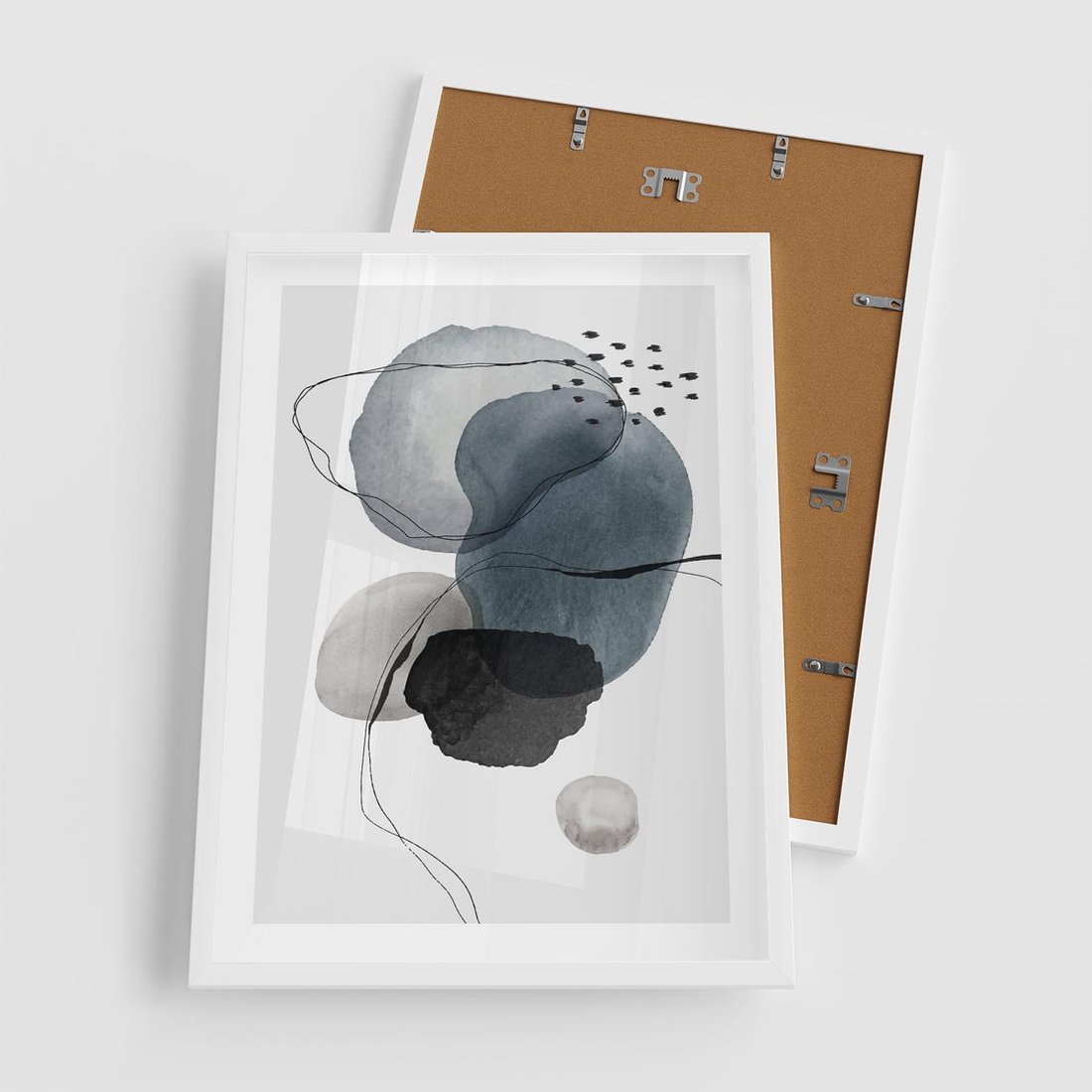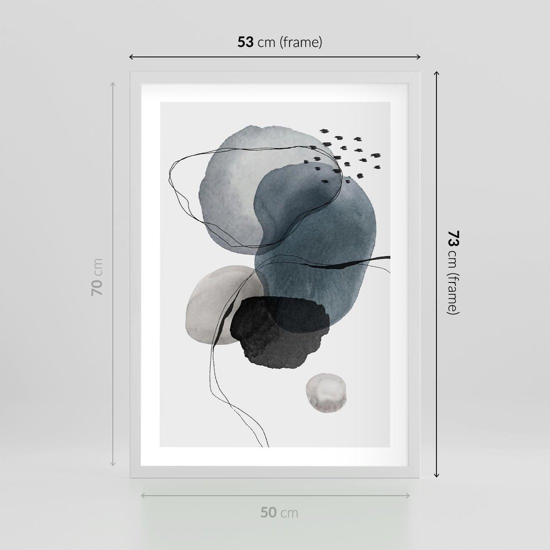 Plakat w ramie 50x70 - Wibracje Kształtów - abstrakcyjne plamy akwarelowe, czarny szkic - rama biała