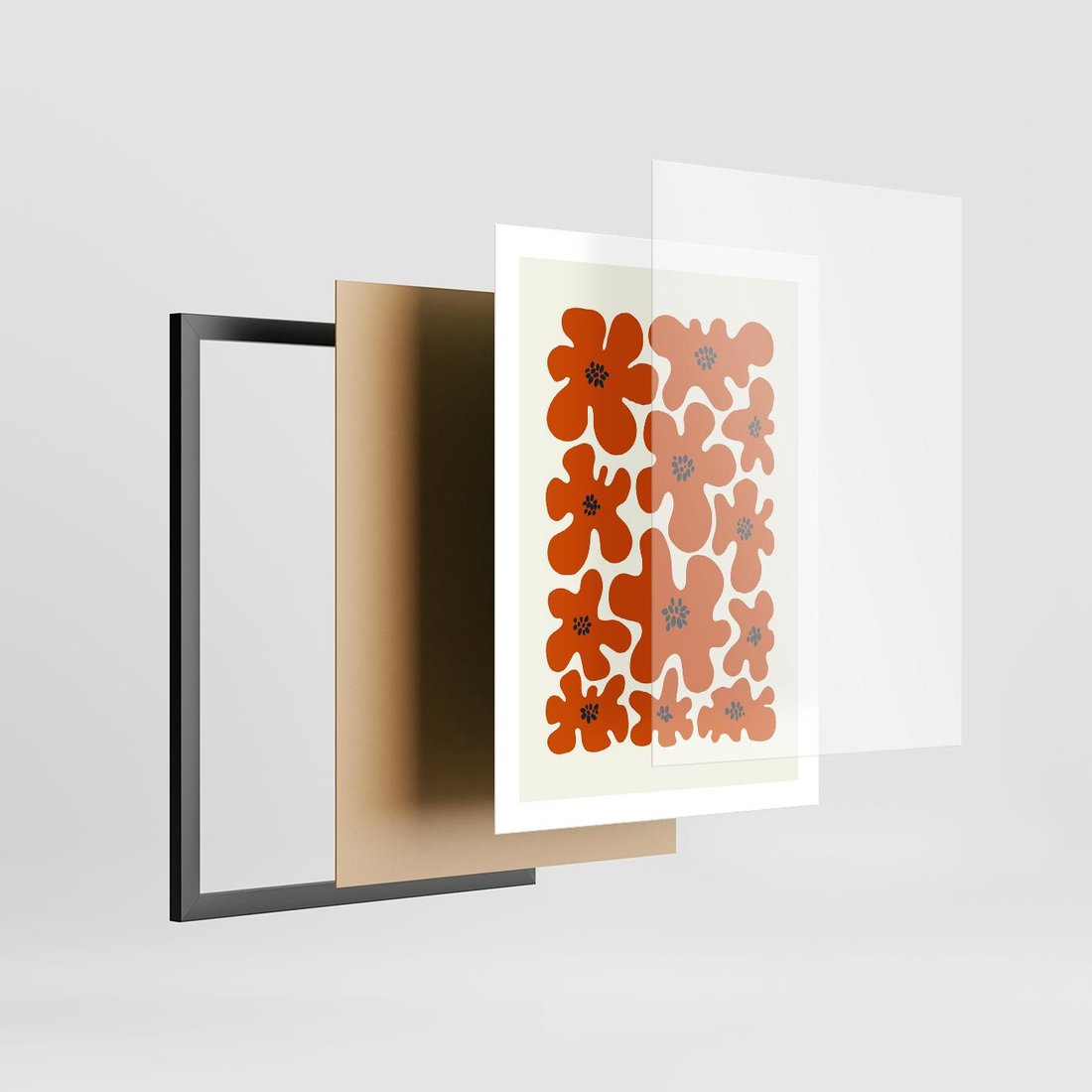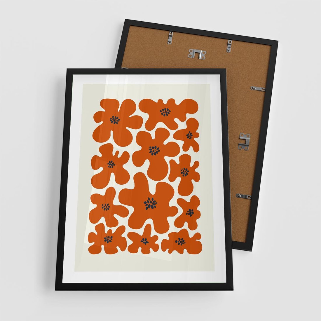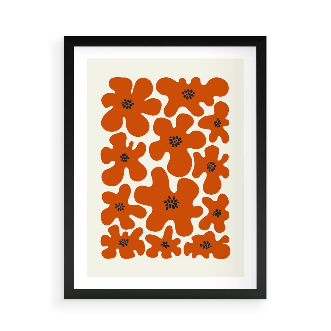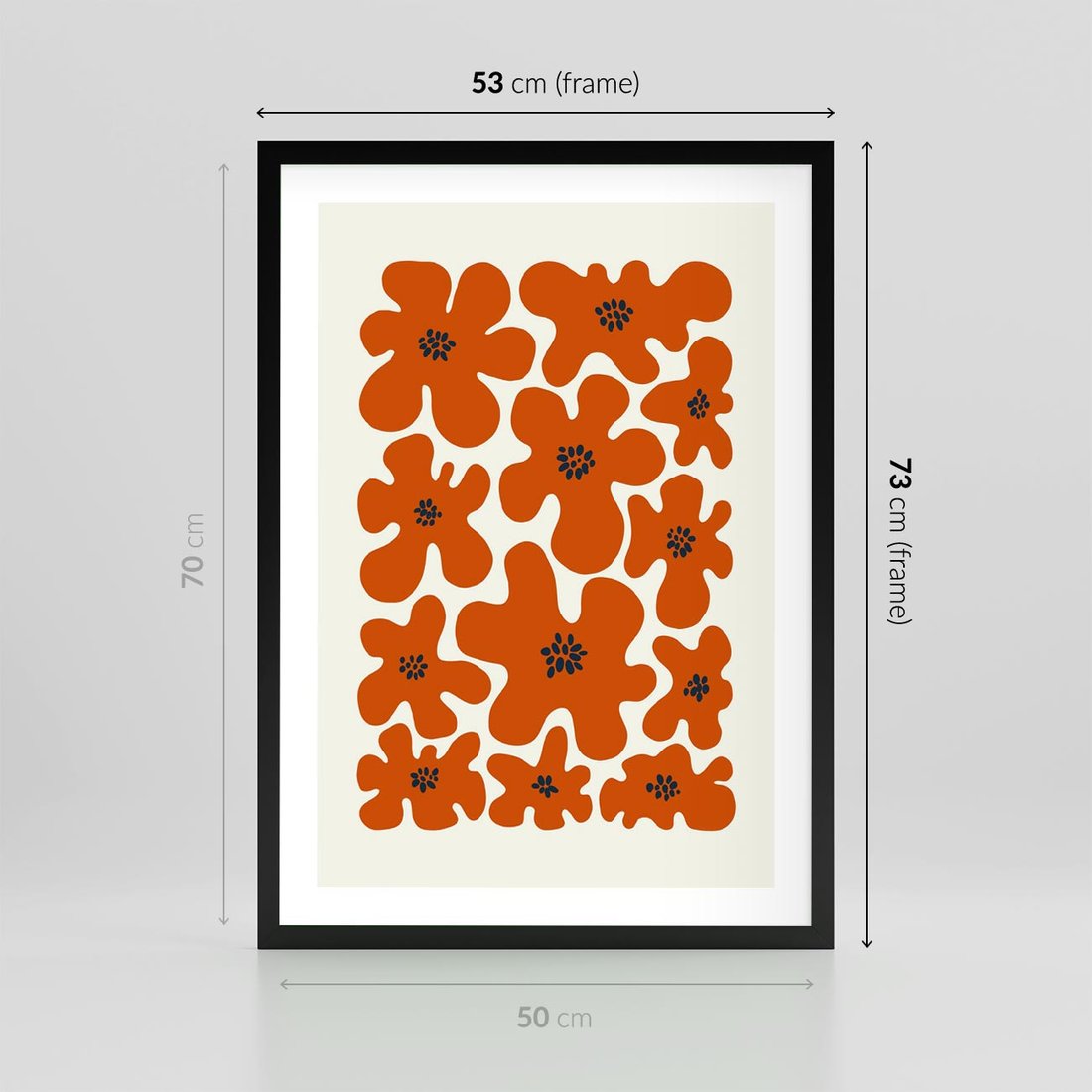 Plakat w ramie 50x70 - Wibracje Przestrzeni - abstrakcyjne czerwone kwiaty, kompozycja - rama czarna