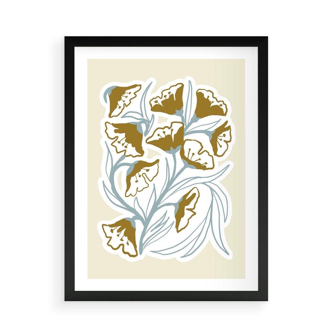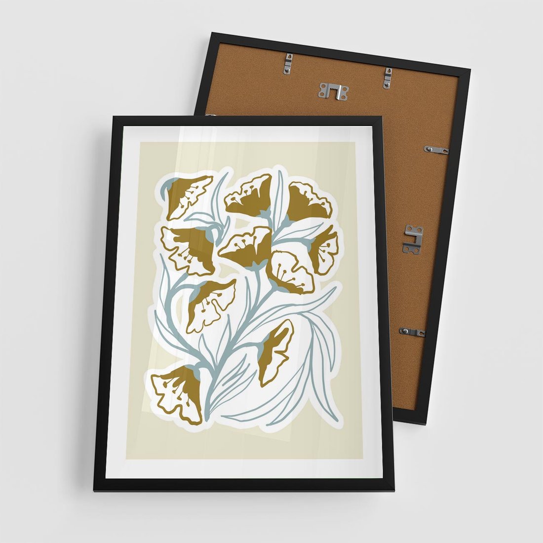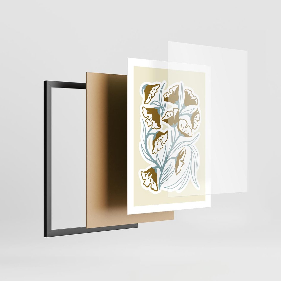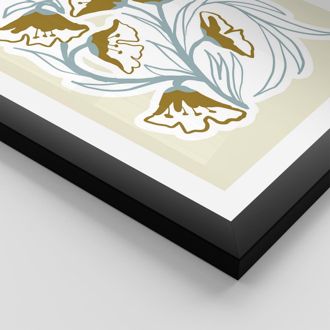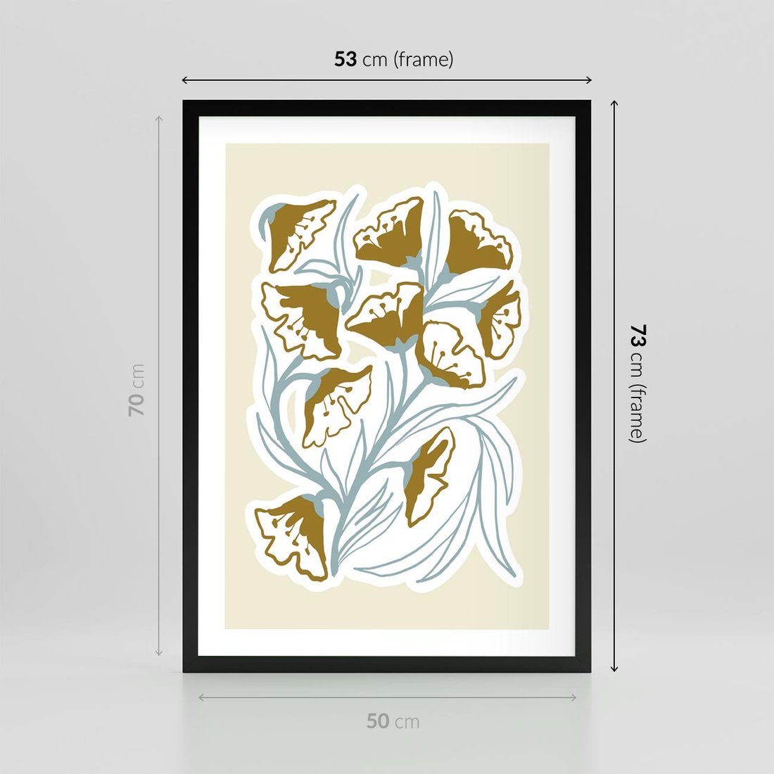 Plakat w ramie 50x70 - Wibracje Widzenia - abstrakcyjne beżowe kwiaty, elegancka kompozycja - rama czarna