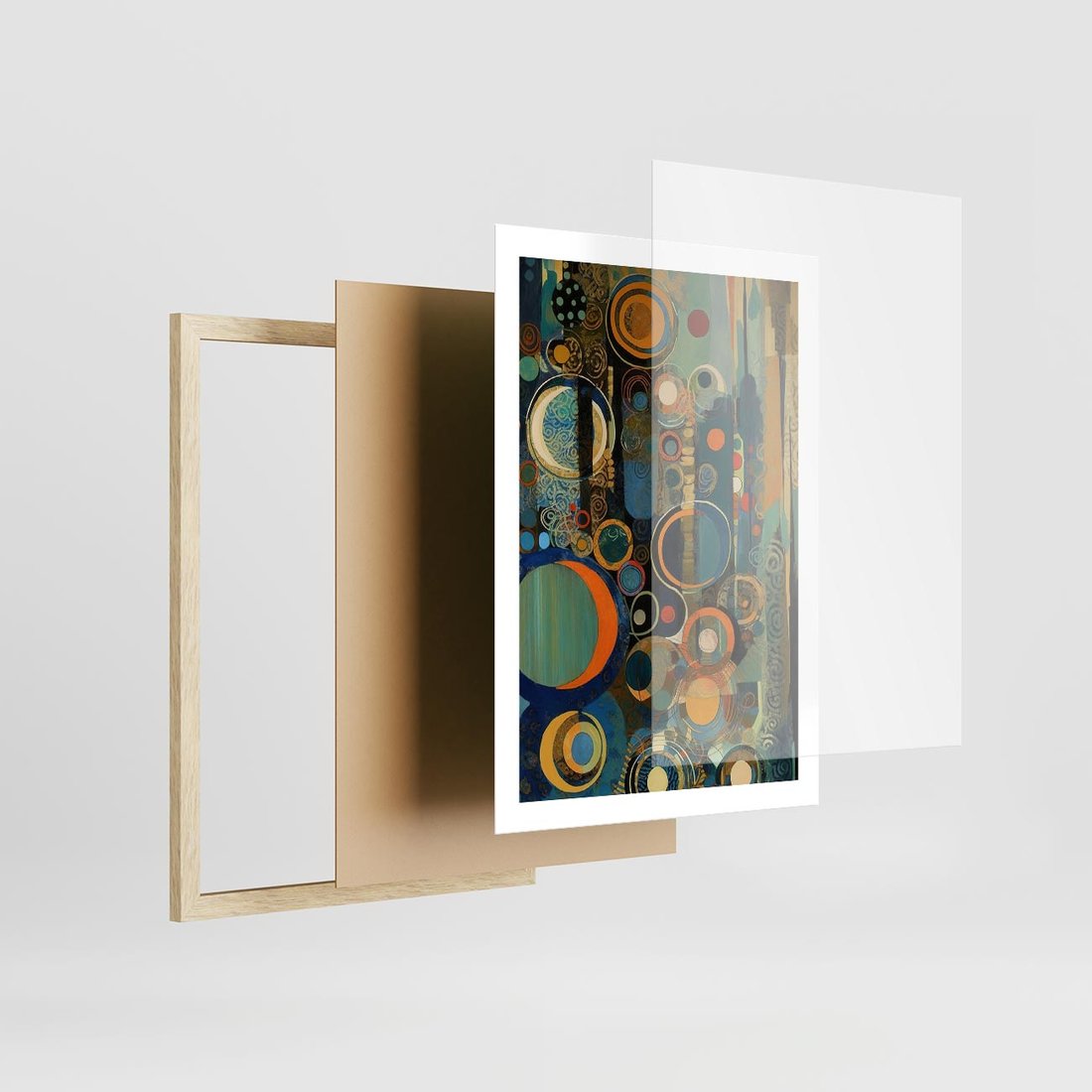 Ten abstrakcyjny obraz wyróżnia się mnogością kolorów i drobnych elementów, które tworzą spójną całość. Ich geometryczne kształty tworzą ciekawą i intrygującą kompozycję, która przyciąga uwagę i pobudza wyobraźnię. To dzieło sztuki o niepowtarzalnym charakterze.