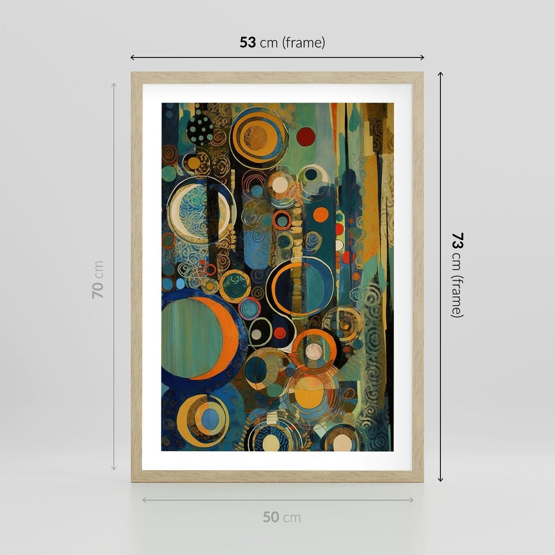 Plakat w ramie 50x70 - Wibracje Wymyślnych Form - abstrakcyjny obraz, mnogość kolorów - rama drewno