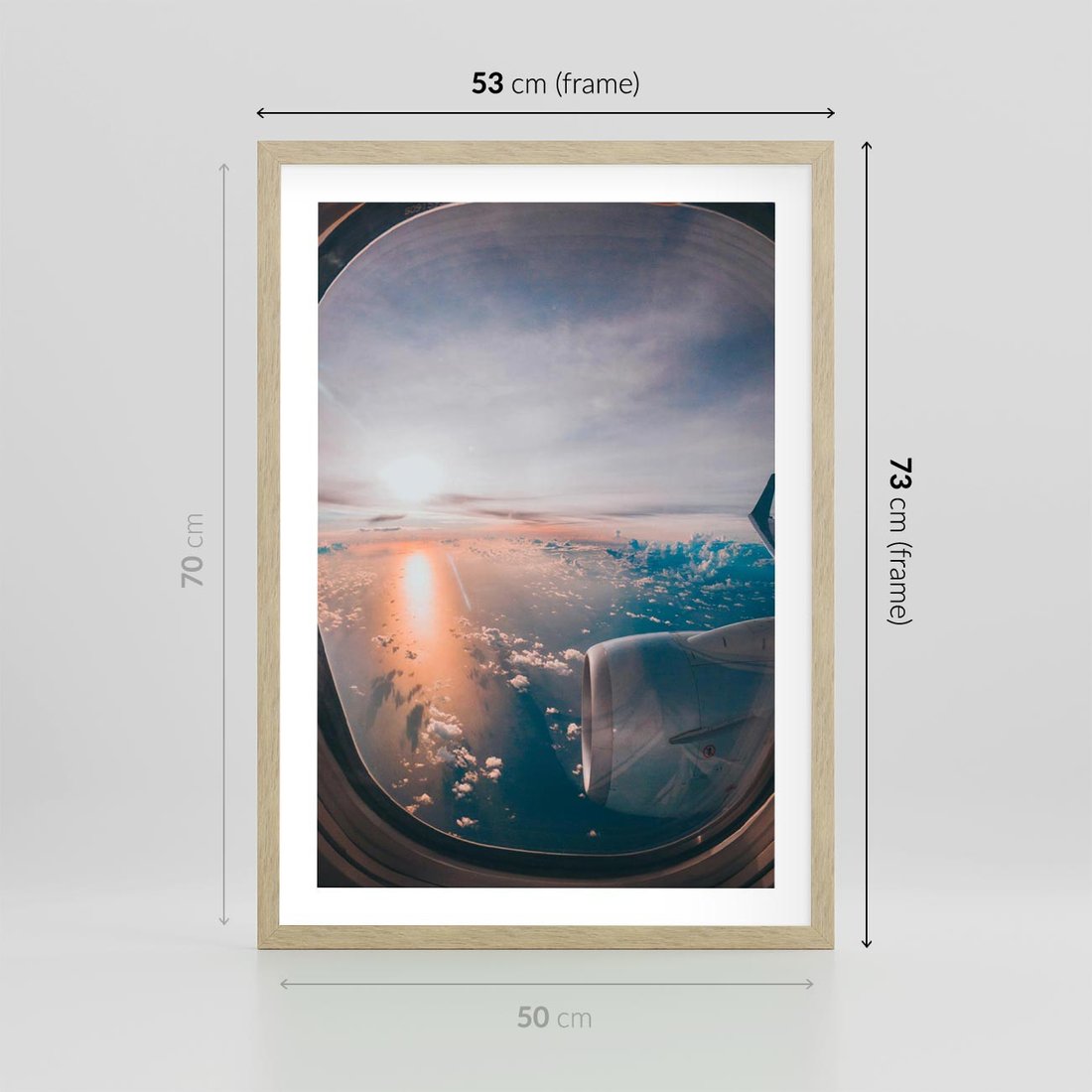 Plakat w ramie 50x70 - Widok z Góry - fotografia, zdjecie z okna samolotu - rama drewno
