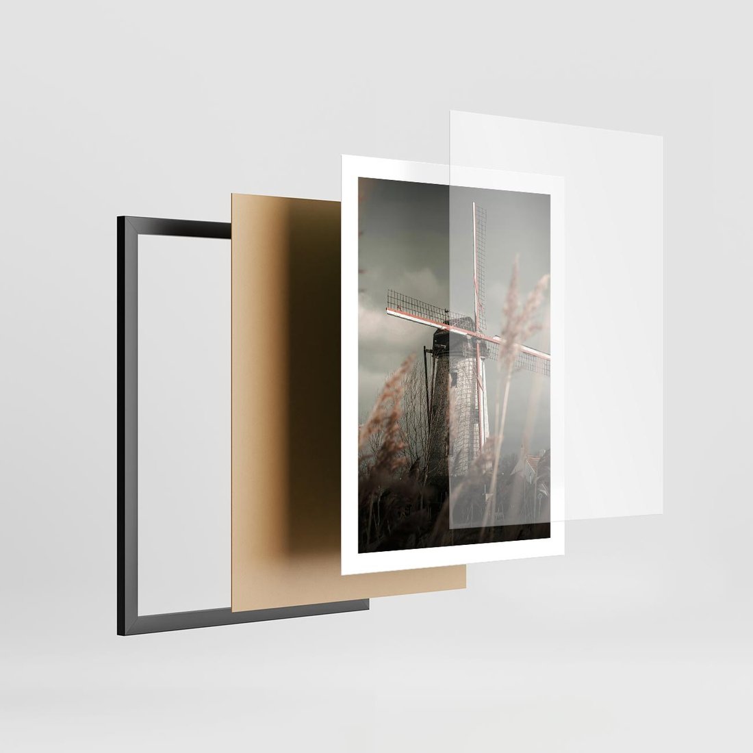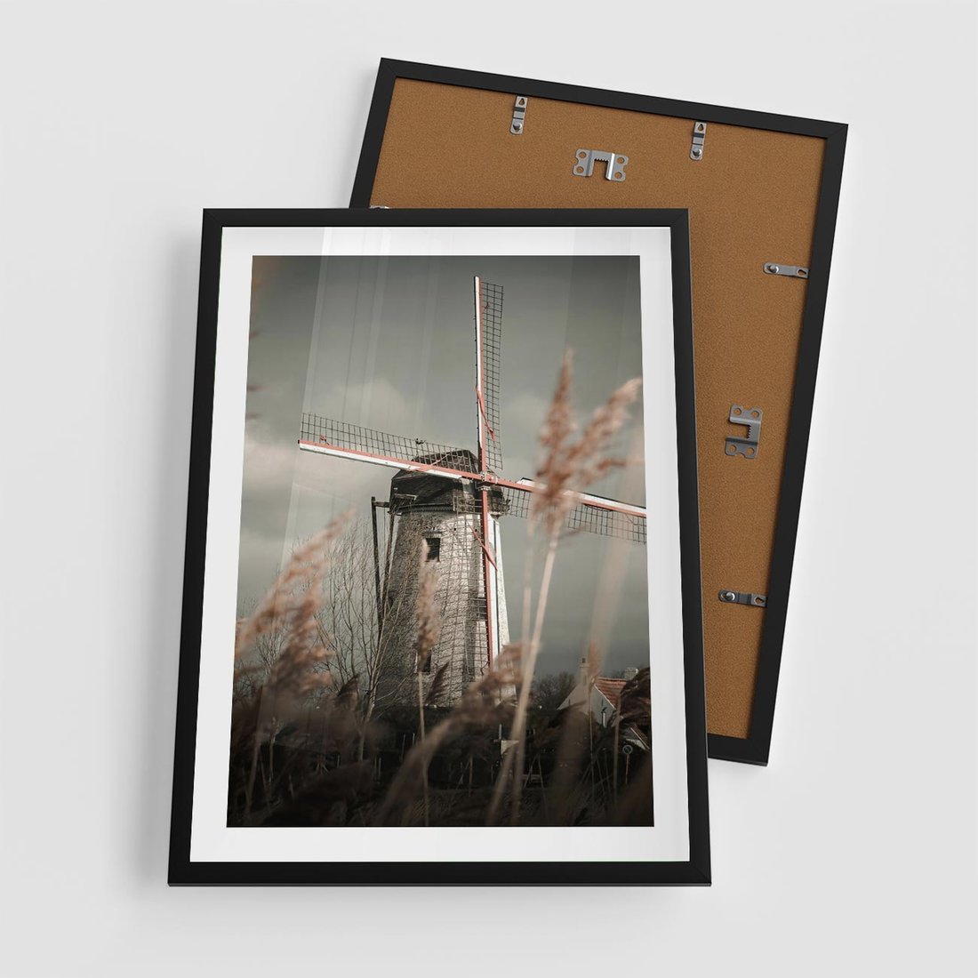 Plakat w ramie 50x70 - Wiejska Idylla: Młyn w Polu - wiatrak, młyn w polu - rama czarna