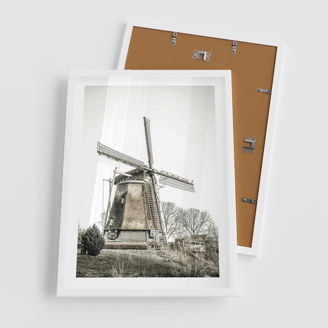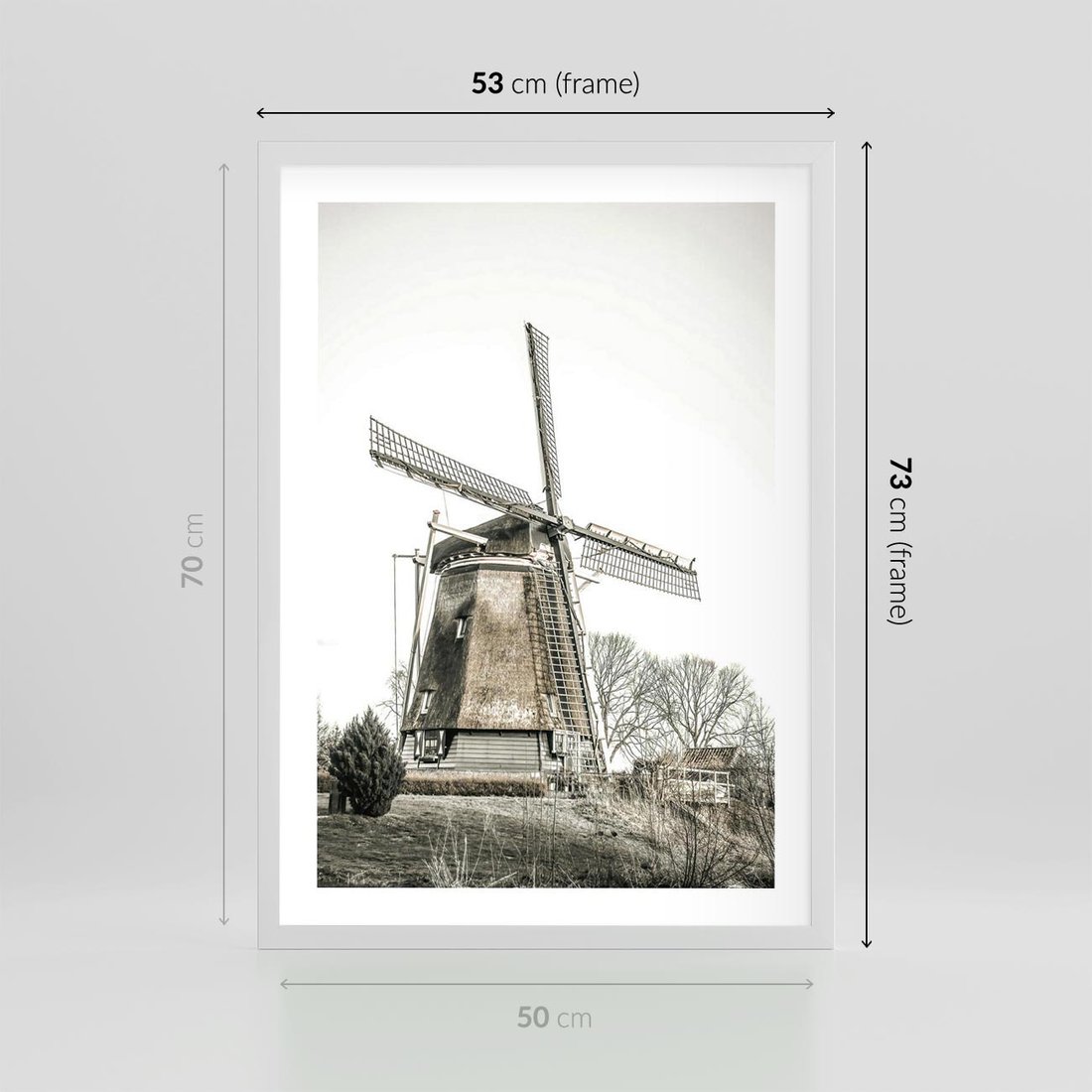 Plakat w ramie 50x70 - Wiejska Idylla z Młynem - wiatrak, młyn - rama biała