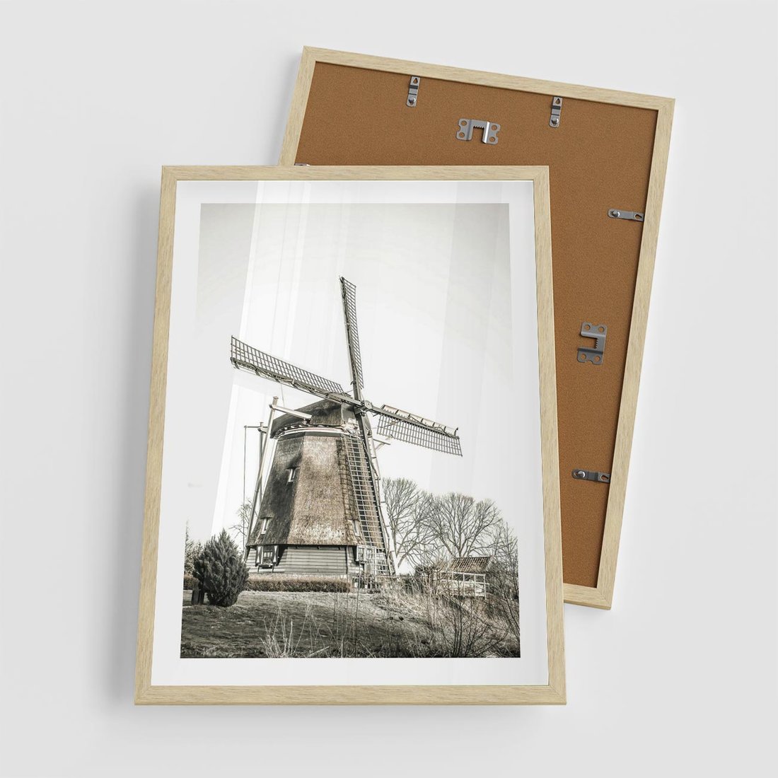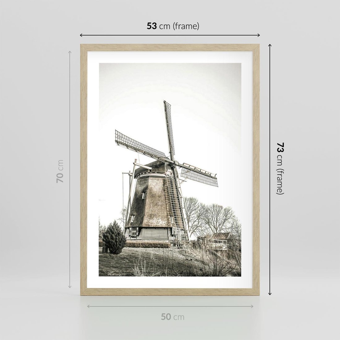 Plakat w ramie 50x70 - Wiejska Idylla z Młynem - wiatrak, młyn - rama drewno