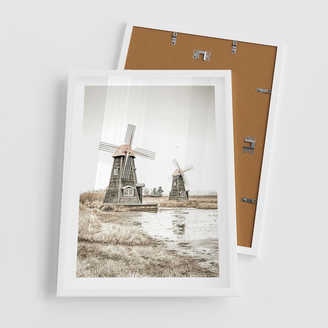 Plakat w ramie 50x70 - Wiejskie Młyny: Rustykalna Fotografia - młyny, rustykalna fotografia - rama biała