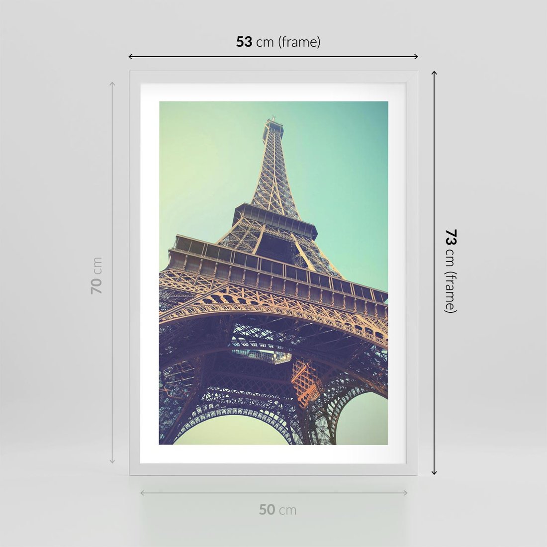 Plakat w ramie 50x70 - Wieża Eiffla w czarno-białej odsłonie - Eiffla, Paryż - rama biała