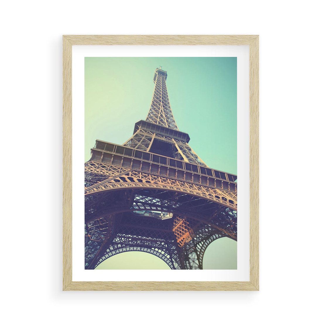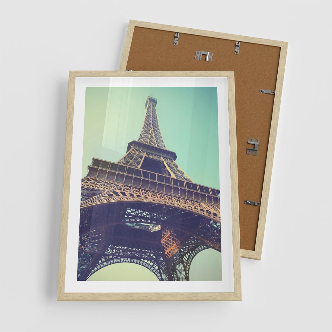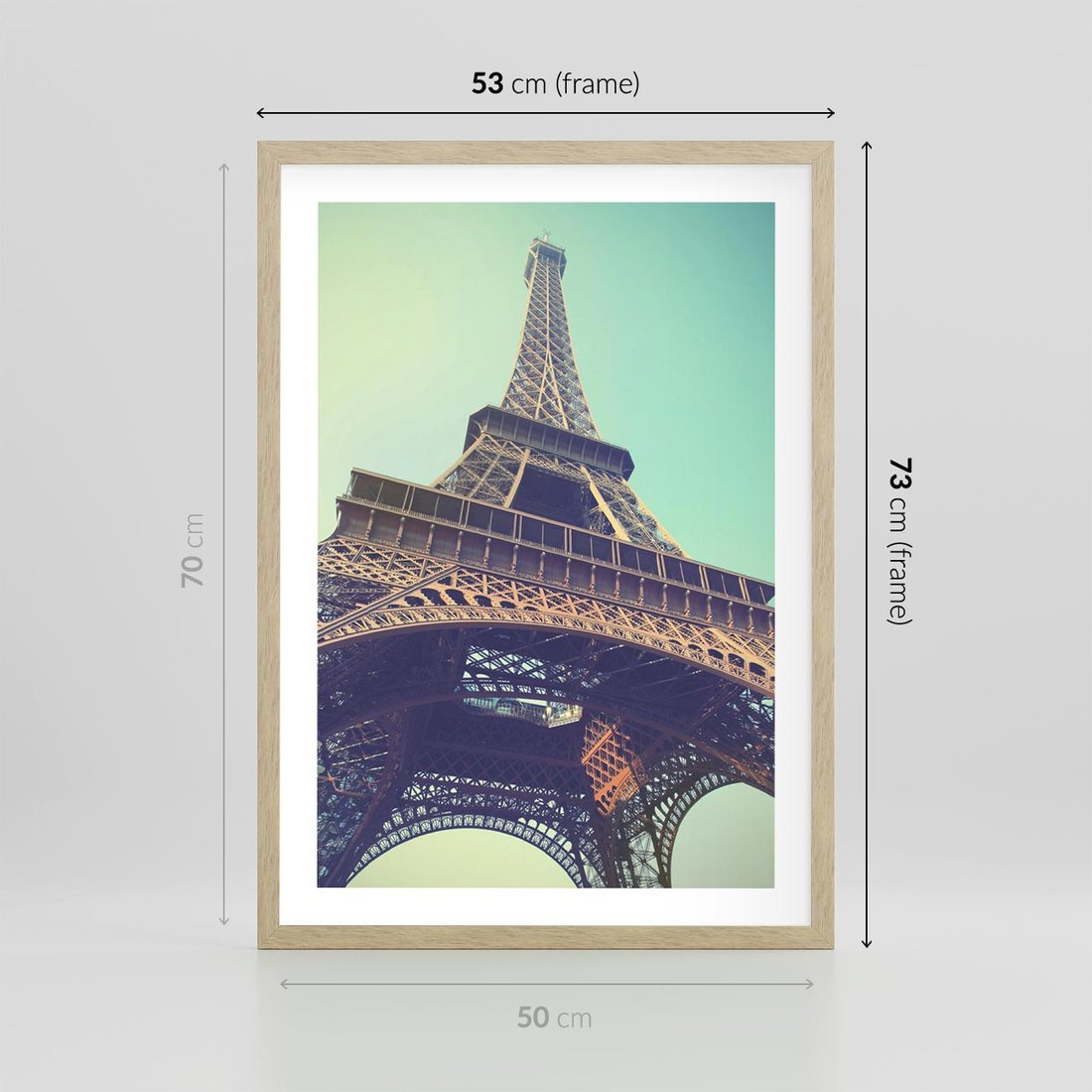 Plakat w ramie 50x70 - Wieża Eiffla w czarno-białej odsłonie - Eiffla, Paryż - rama drewno