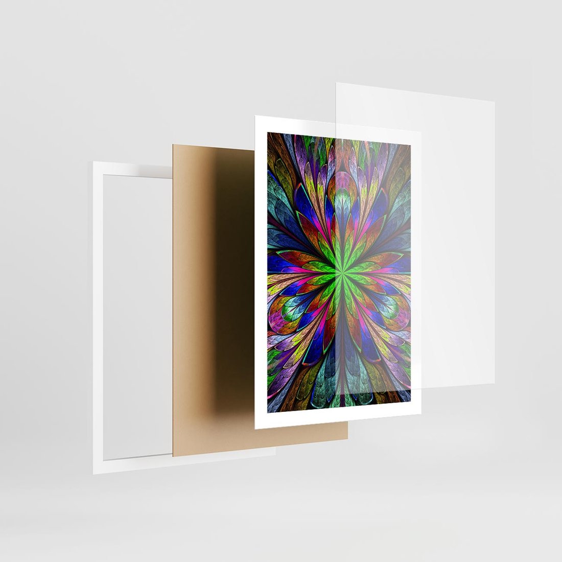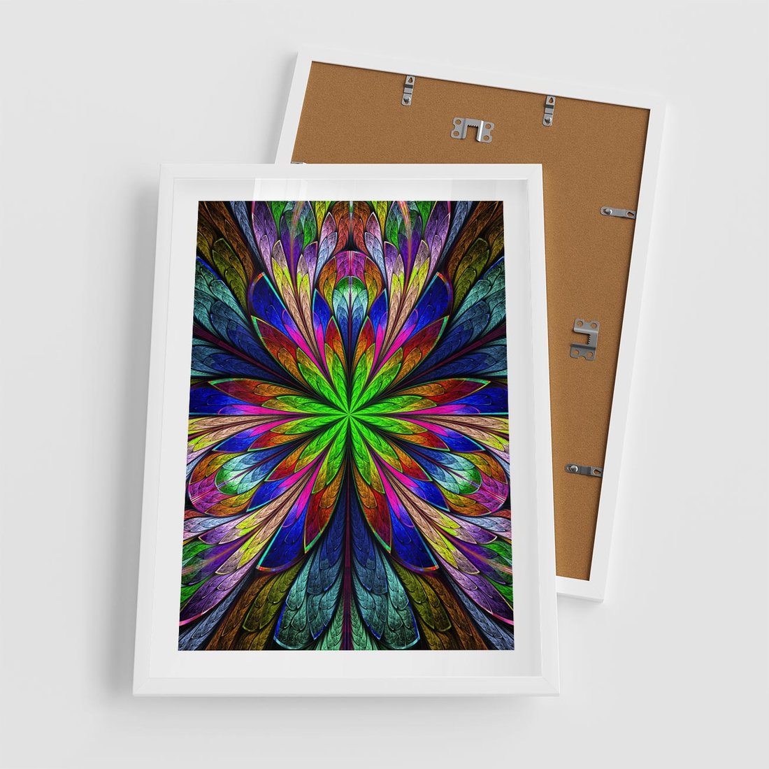 Plakat w ramie 50x70 - Witrażowa magia na płótnie - witraż, sztuka - rama biała