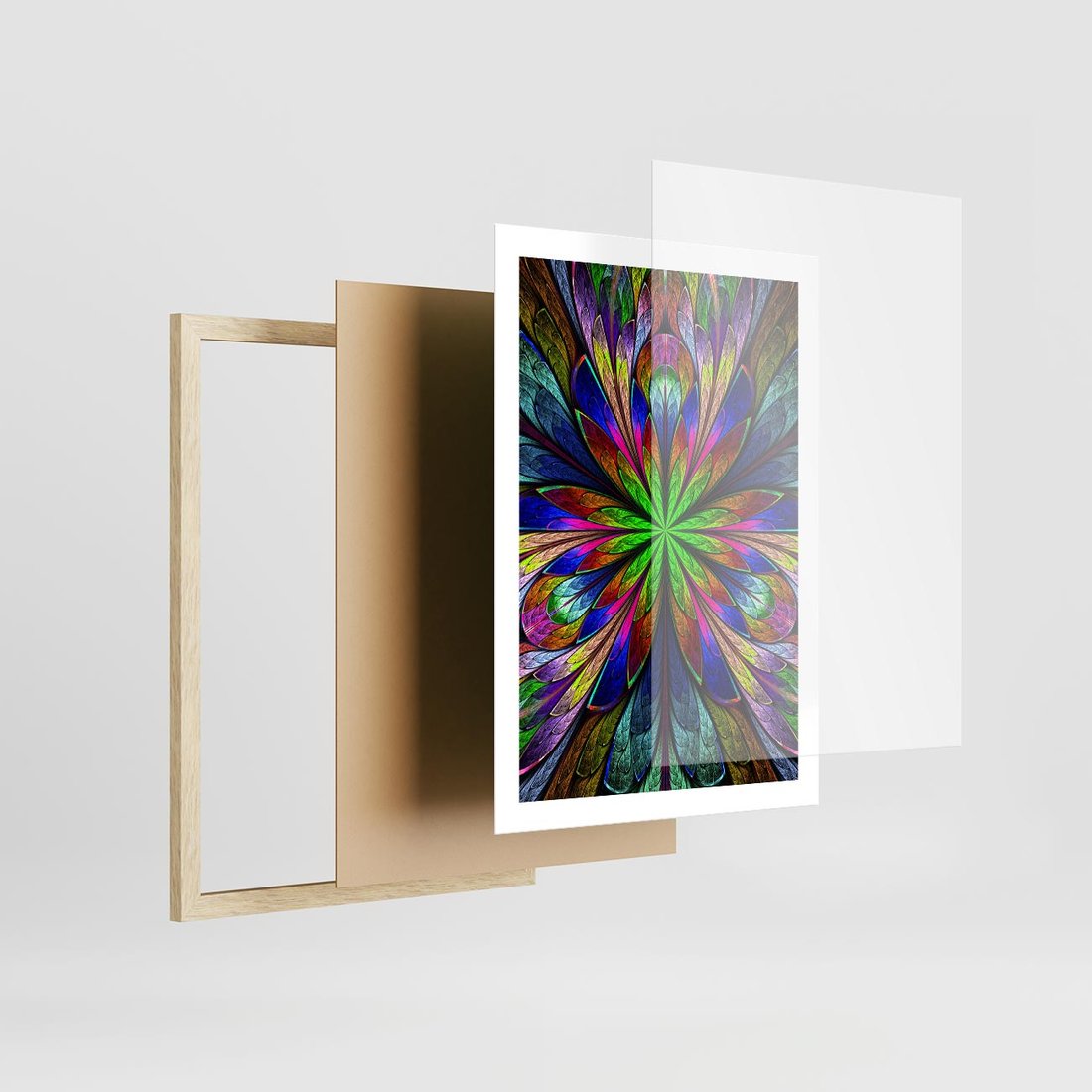 Plakat w ramie 50x70 - Witrażowa magia na płótnie - witraż, sztuka - rama drewno