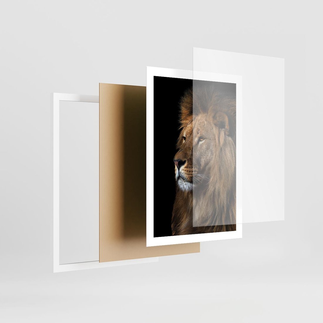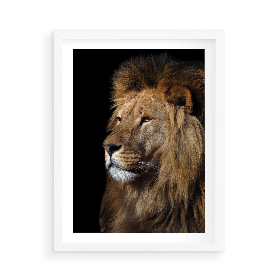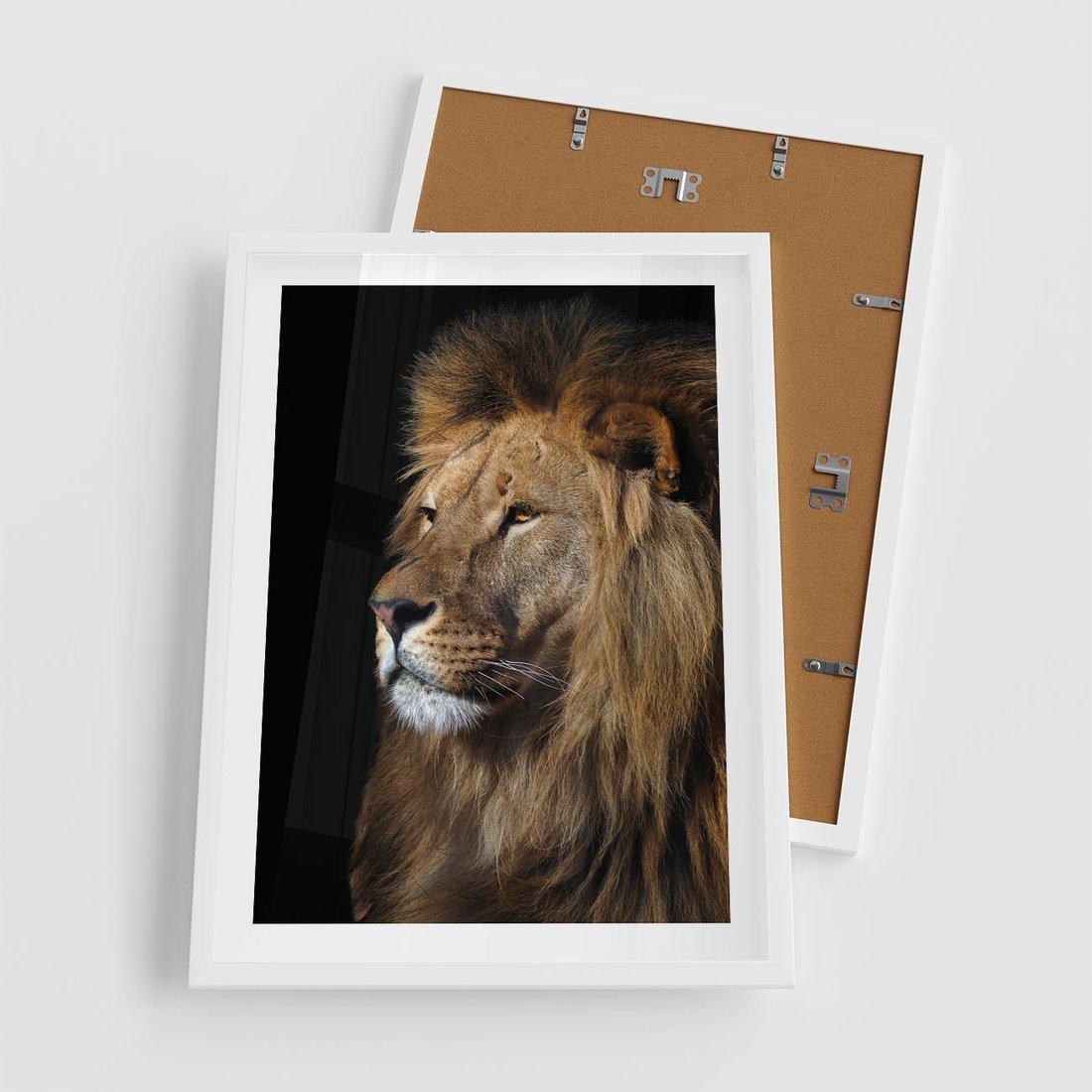 Plakat w ramie 50x70 - Władca Dzikiej Przyrody - lew, król - rama biała