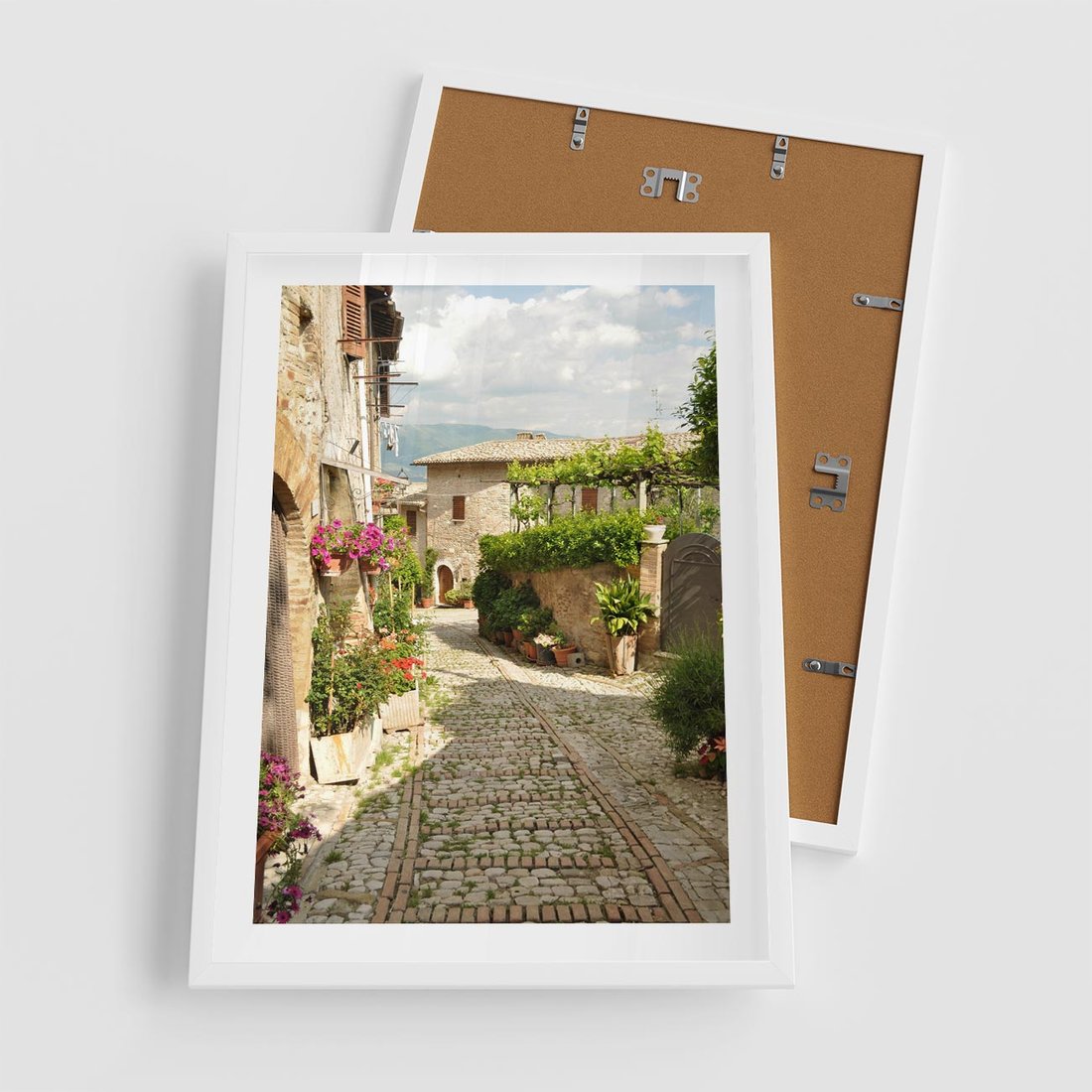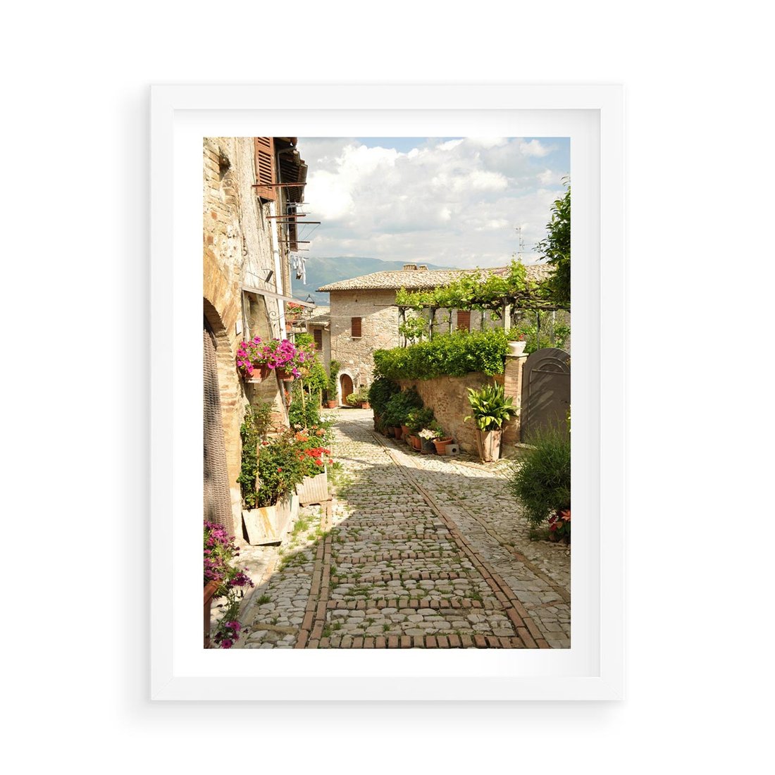 Plakat w ramie 50x70 - Włoskie Uliczki - włoska, uliczka - rama biała