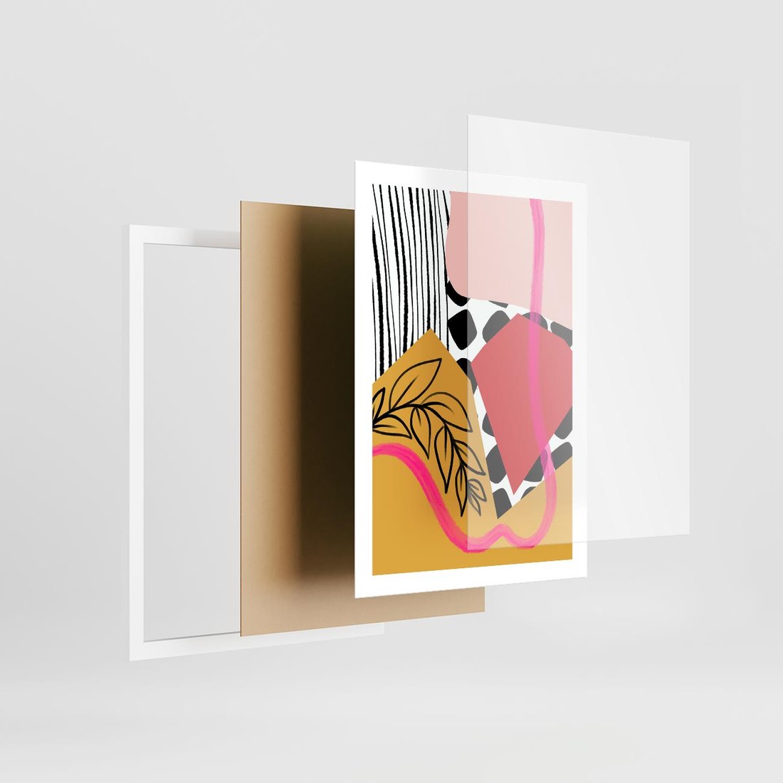 Plakat w ramie 50x70 - Wnętrza Form - abstrakcyjna kompozycja, różne tekstury - rama biała
