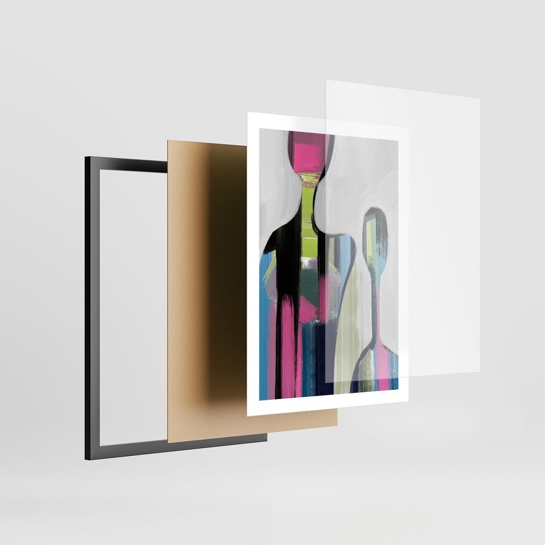 Plakat w ramie 50x70 - Wnętrza Kształtów - abstrakcyjna sztuka, nowoczesny obraz - rama czarna