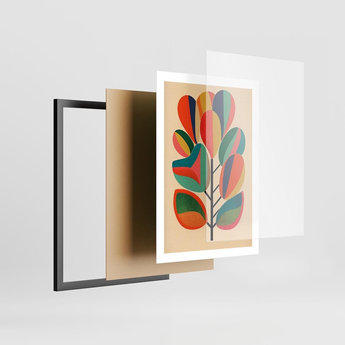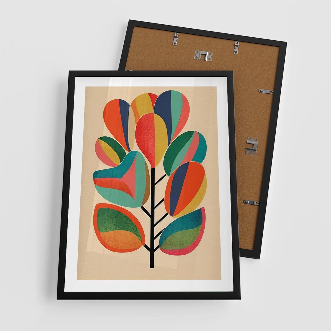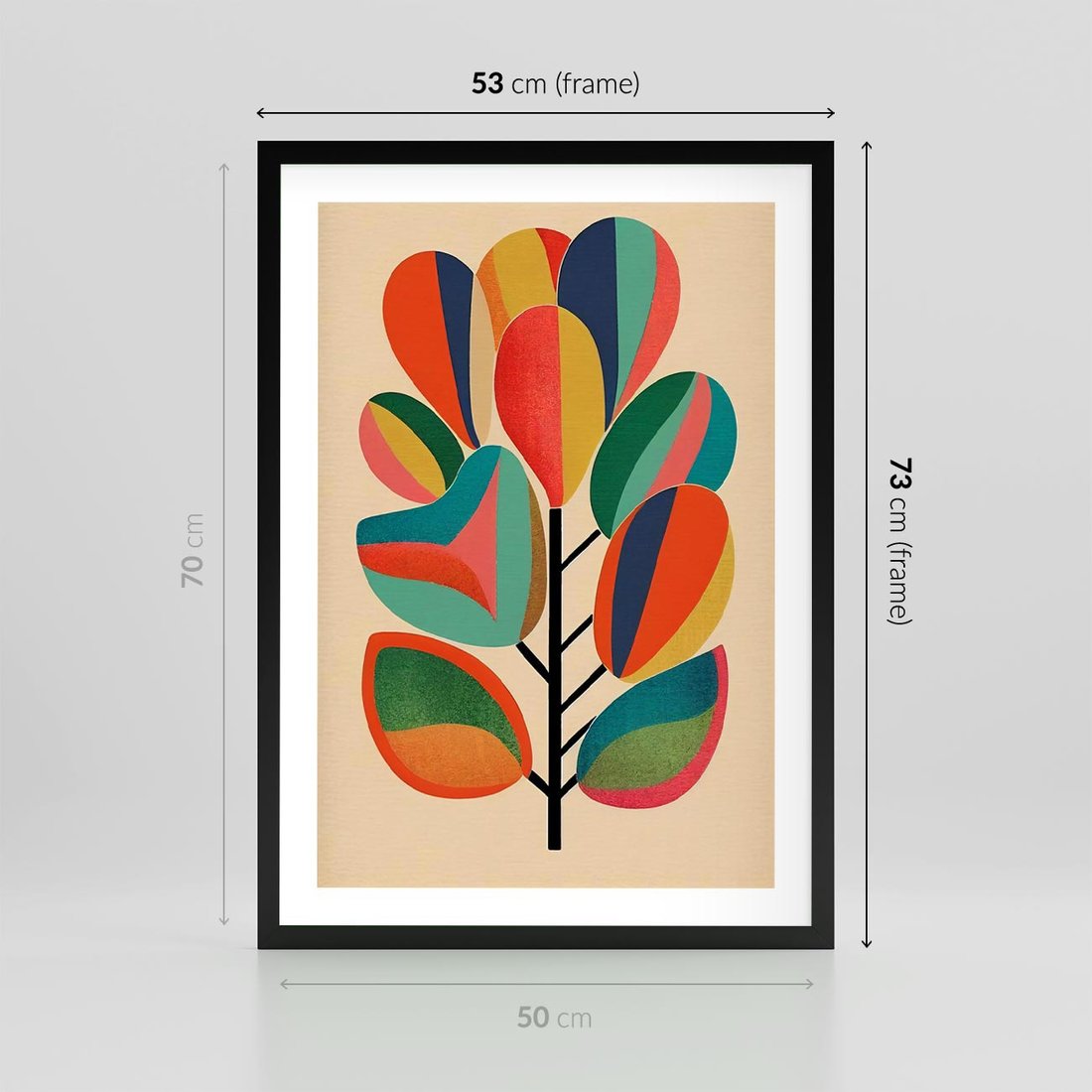 Plakat w ramie 50x70 - Wnętrza Kształtów - abstrakcyjny kolorowy tęczowy obraz, inspiracje roślinne - rama czarna