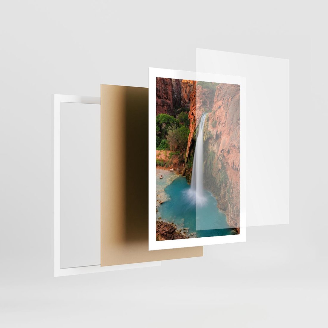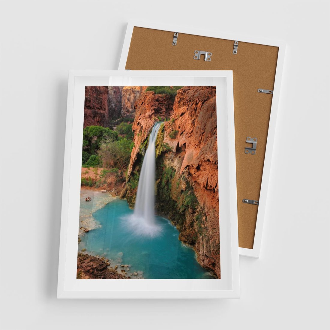 Plakat w ramie 50x70 - Wodospad wśród majestatycznych gór - wodospad, górski - rama biała