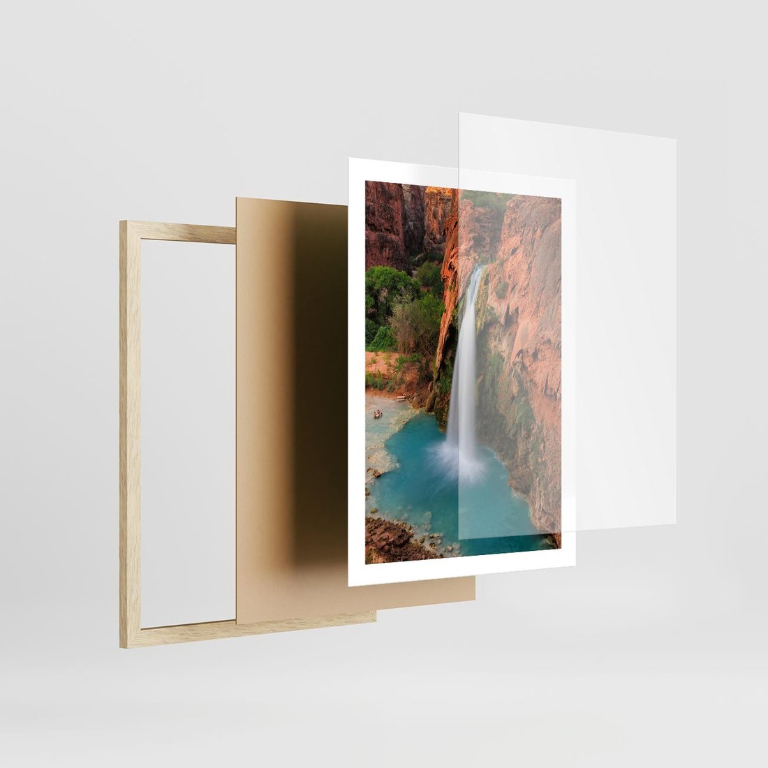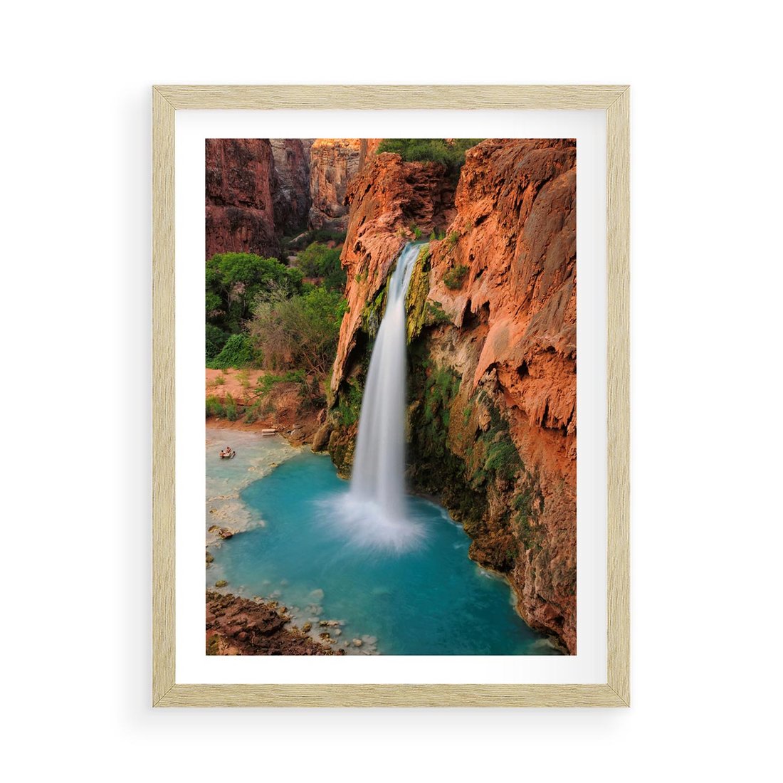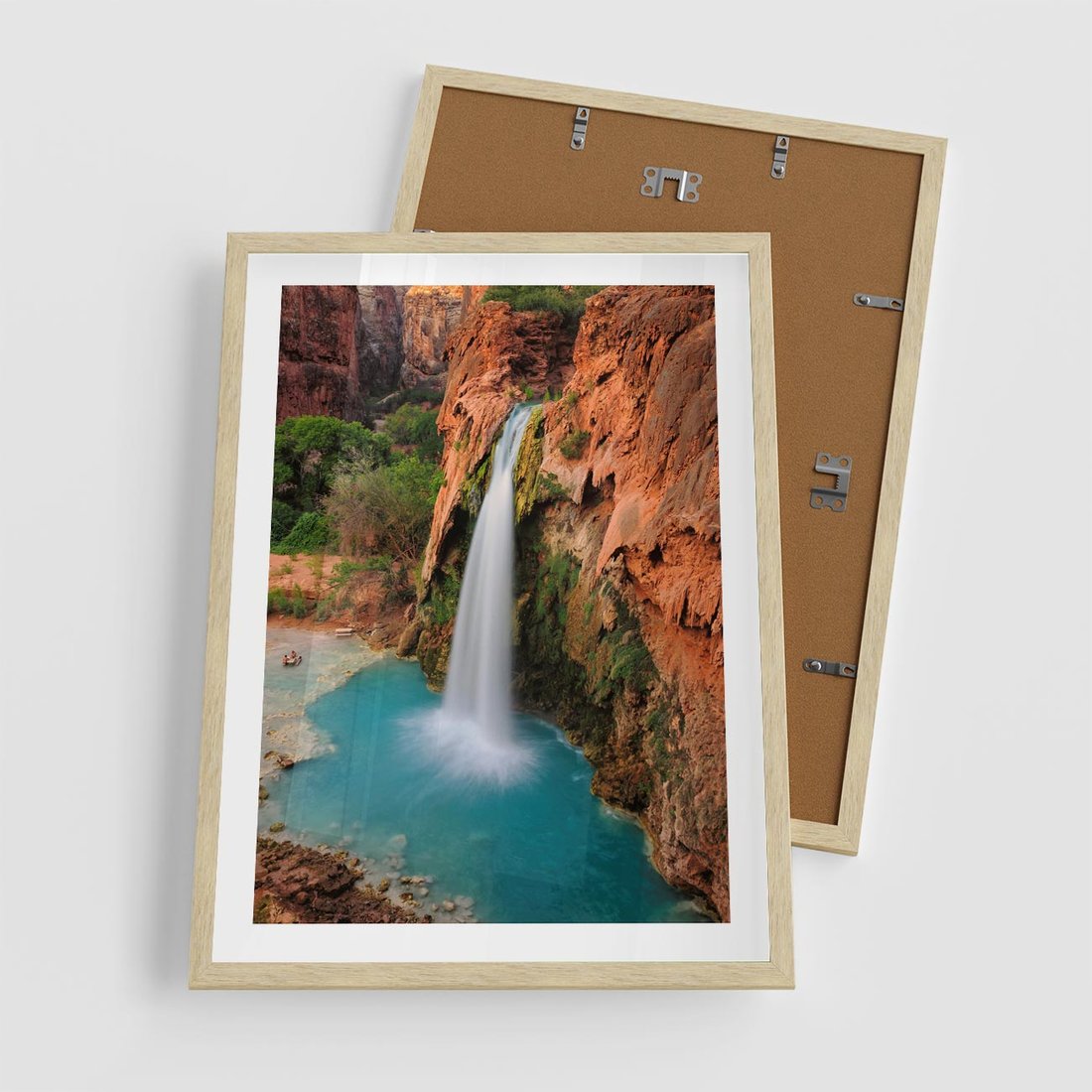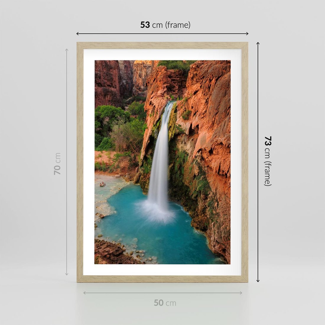 Plakat w ramie 50x70 - Wodospad wśród majestatycznych gór - wodospad, górski - rama drewno
