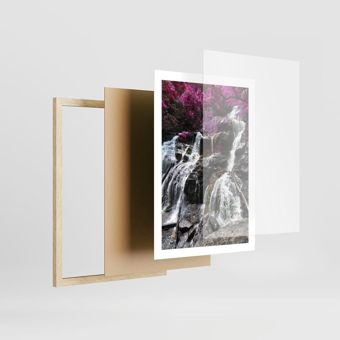 Plakat w ramie 50x70 - Wodospad wśród majestatycznych gór - wodospad, góry - rama drewno