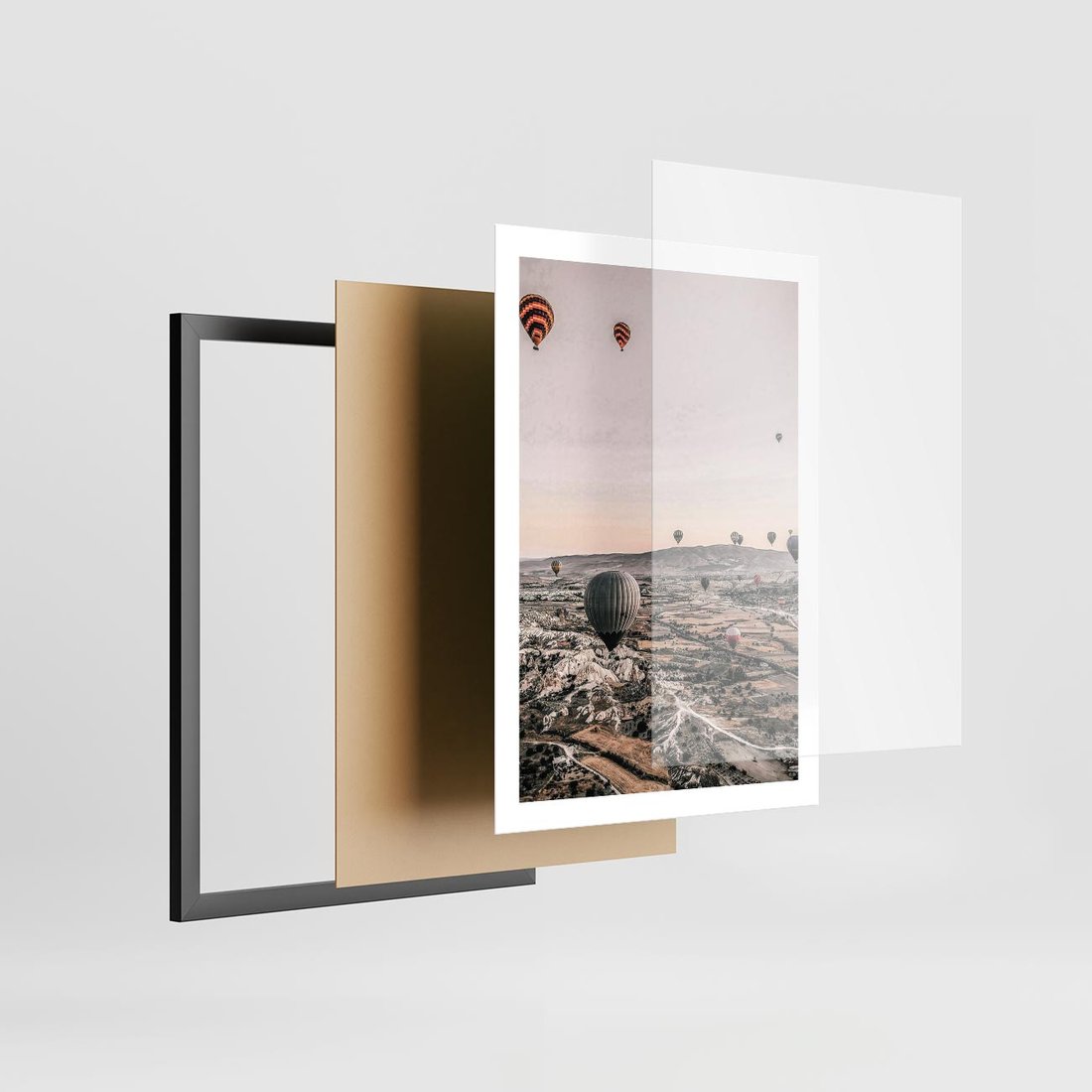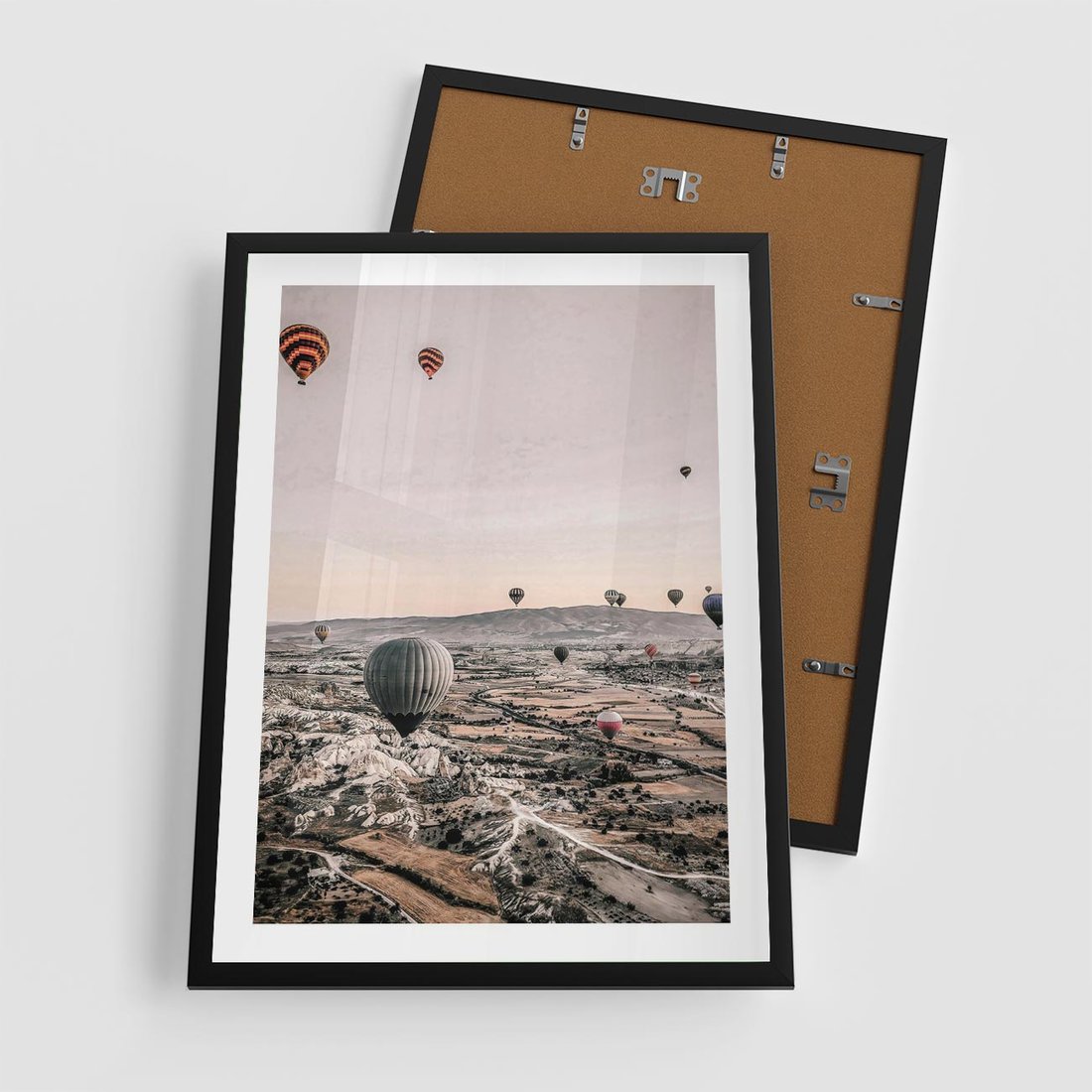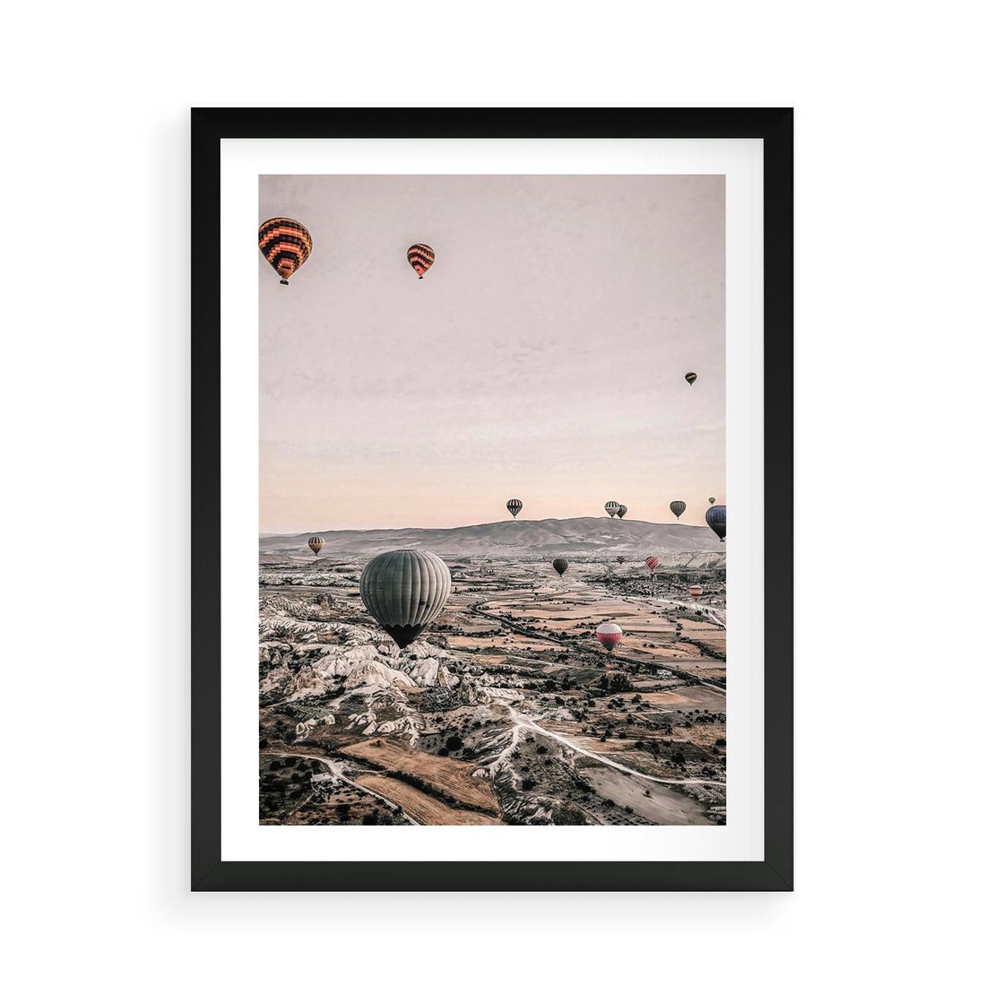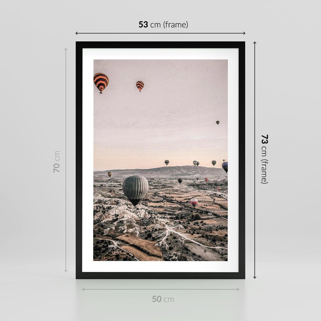 Plakat w ramie 50x70 - Wolność w Powietrzu - balony latające nas pustynnym krajbrazem, balony do latania - rama czarna