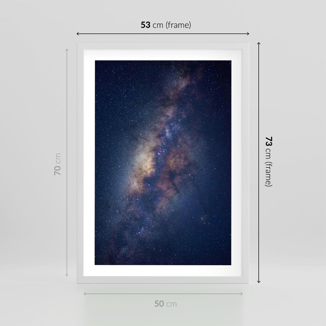 Plakat w ramie 50x70 - Wśród Gwiazd - rozgwieżdzone niebo, droga mleczna - rama biała