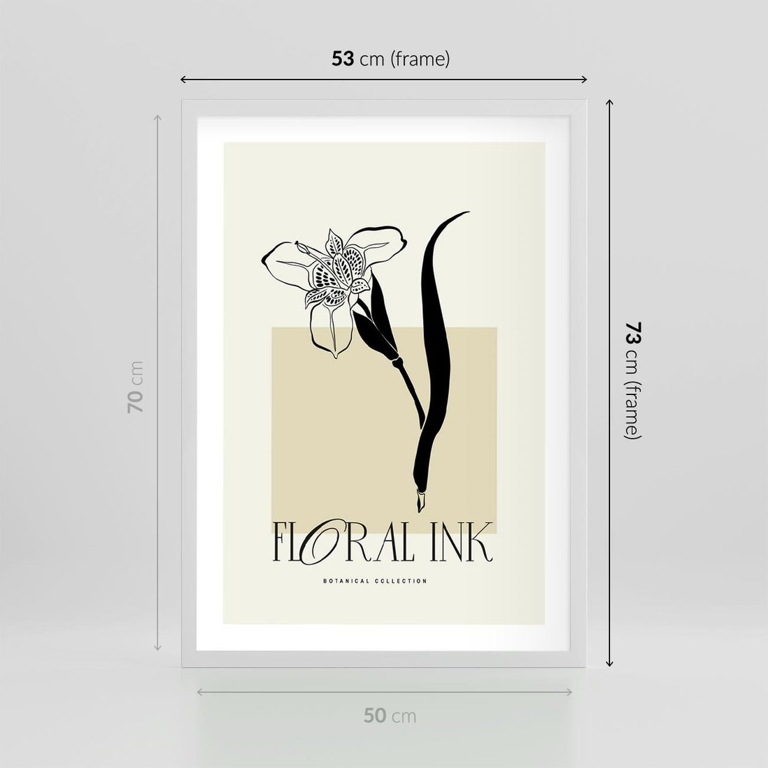 Oto minimalistyczny obraz przedstawiający delikatny irys. Jego graficzny styl oddaje esencję piękna i prostoty natury. To dzieło sztuki jest wyjątkowym dodatkiem do wnętrz o minimalistycznym charakterze, dodając subtelności i elegancji poprzez wyjątkową interpretację kwiatowego motywu.