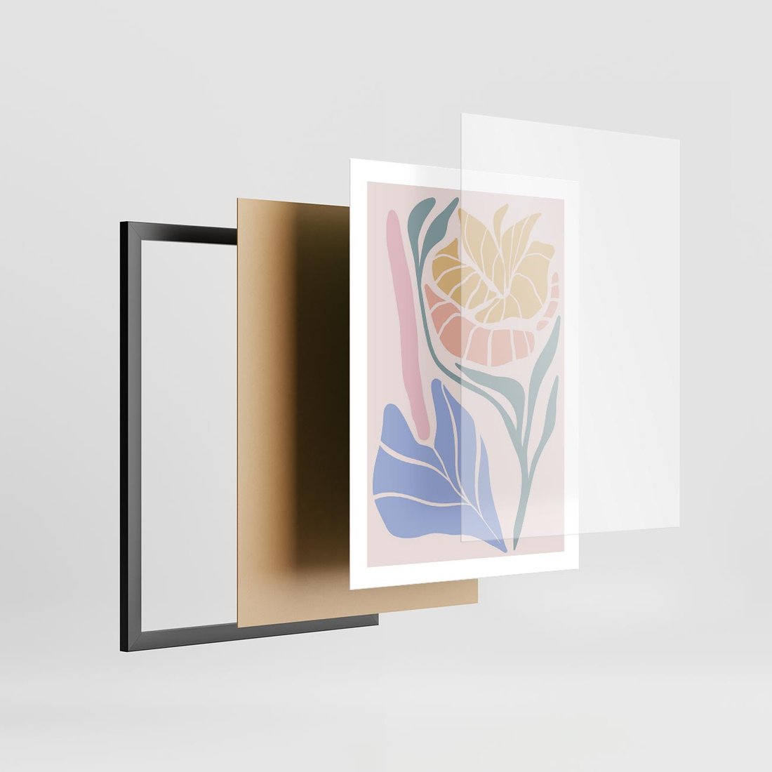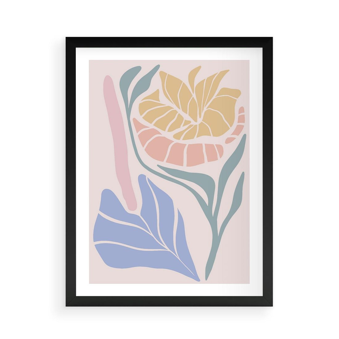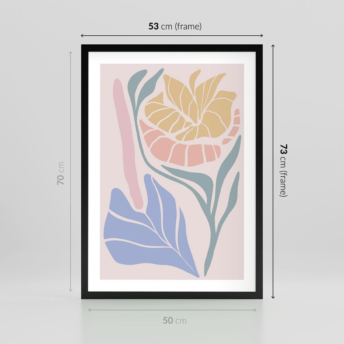 Plakat w ramie 50x70 - Wyjątkowe Ukojenie - pastelowe kwiaty, na beżowym tle - rama czarna