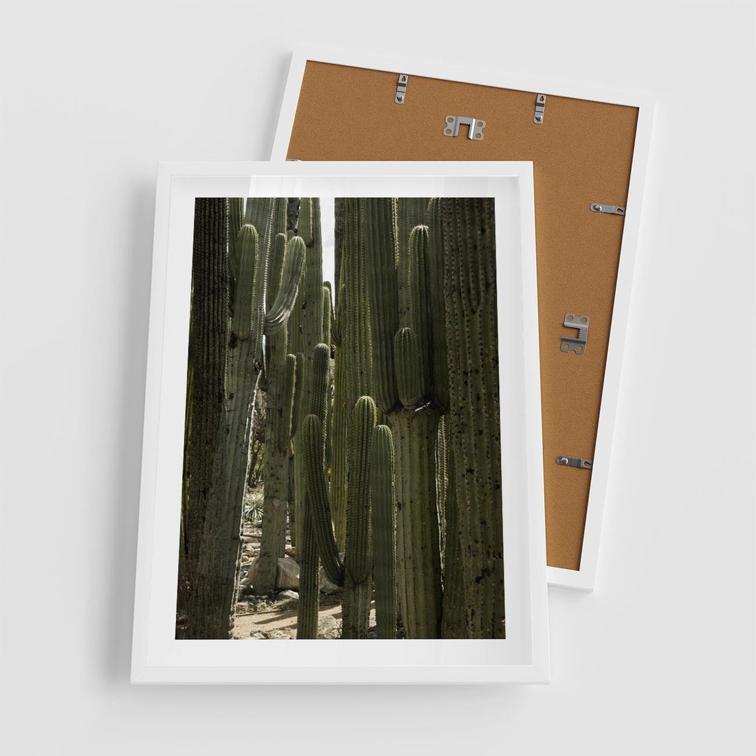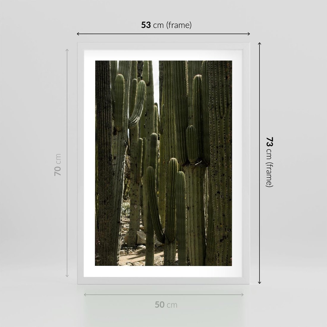 Plakat w ramie 50x70 - Wyjątkowy Klimat Boho - kaktusy, pustynia - rama biała