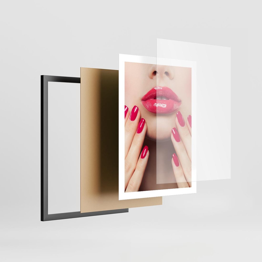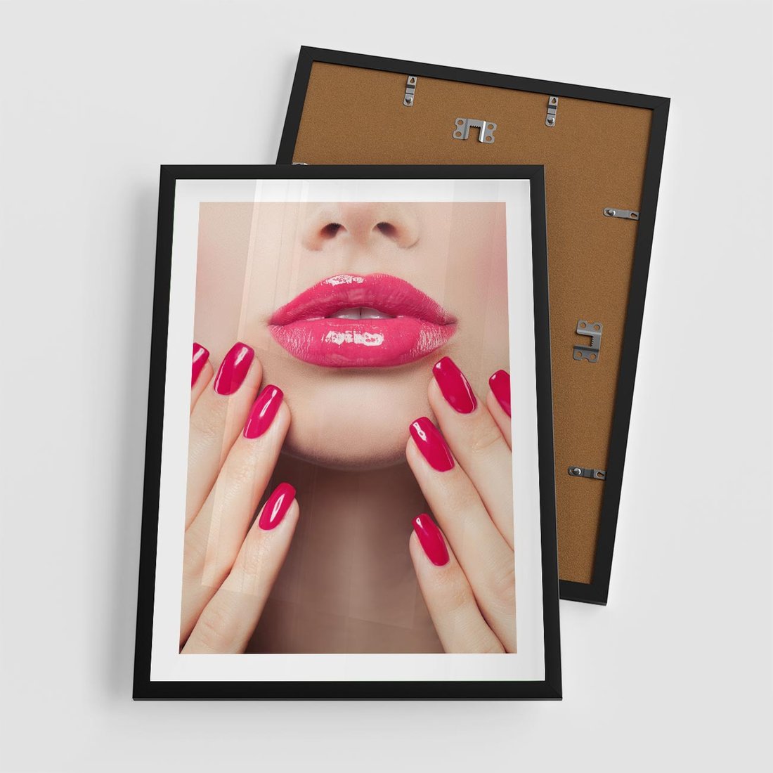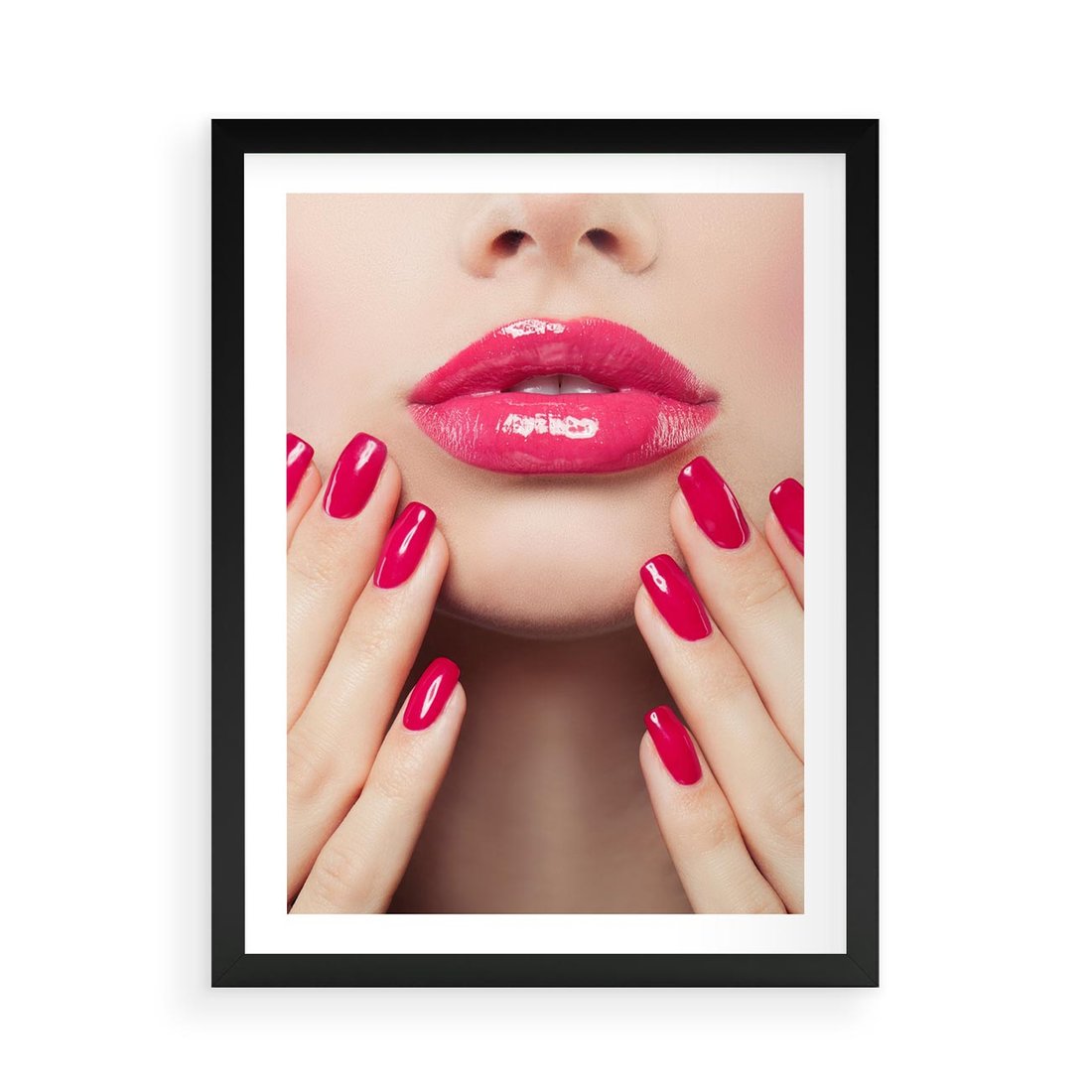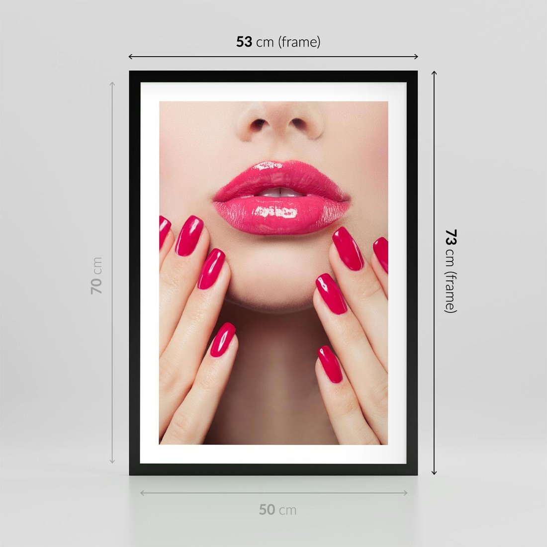 Plakat w ramie 50x70 - Wyrażenie Piękna - paznokcie, usta - rama czarna