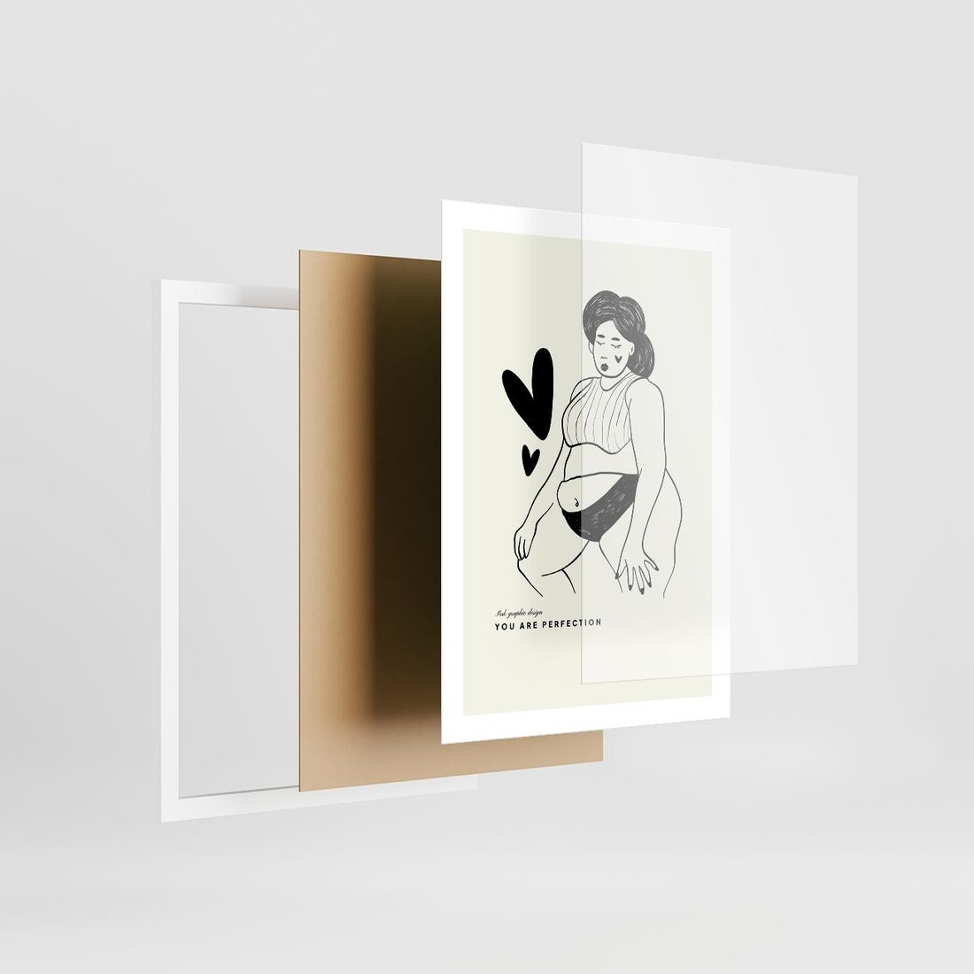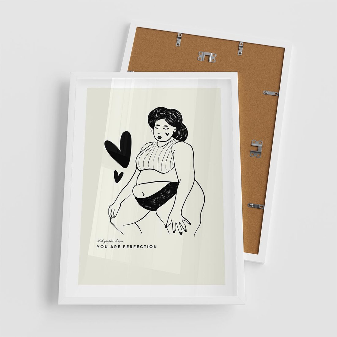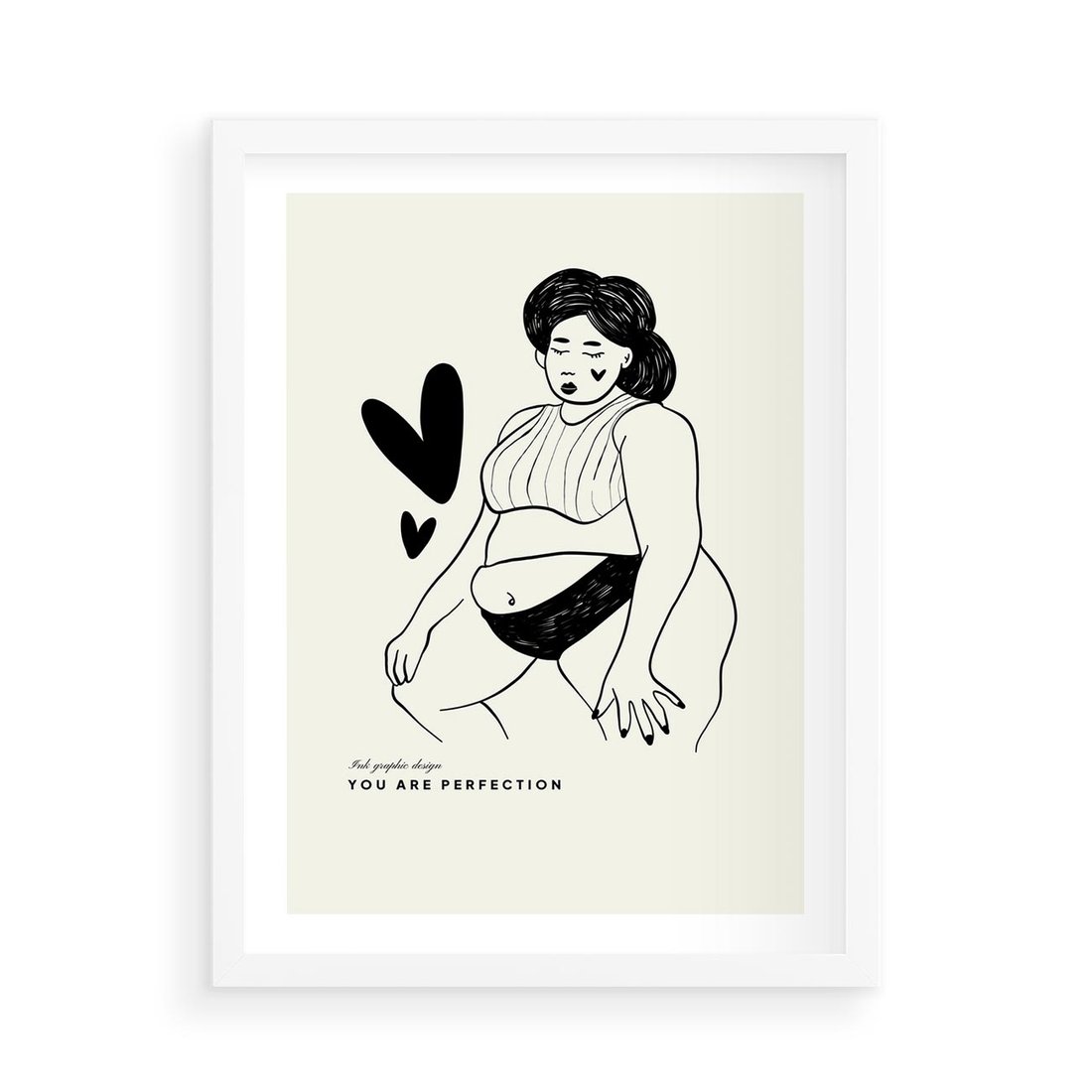Ta sztuka rysunkowa ukazuje piękno kobiecej sylwetki w bieliźnie. Wzbogacona wyrazistą typografią, przypomina o sile wyrażania indywidualnego piękna i pewności siebie.