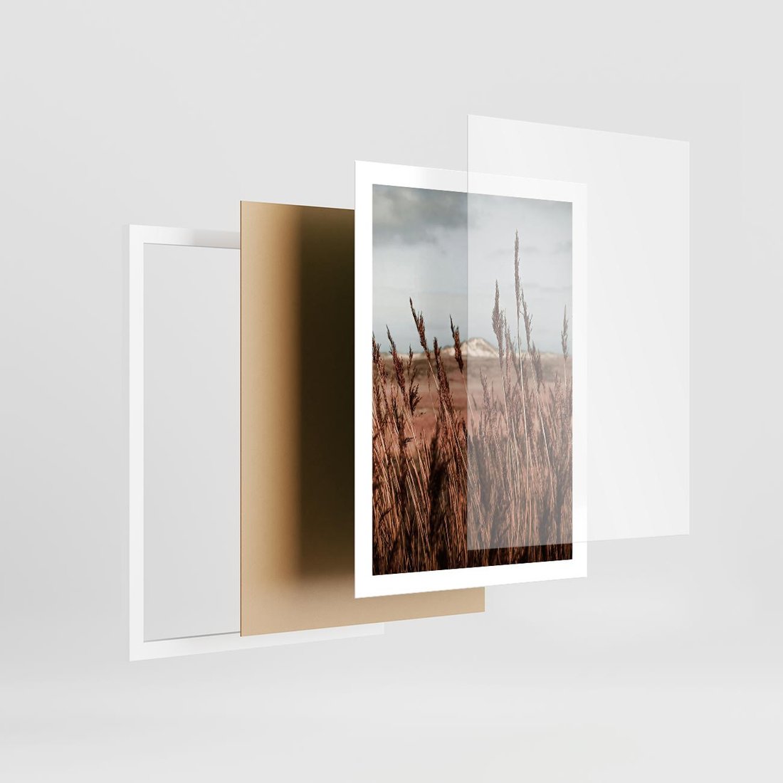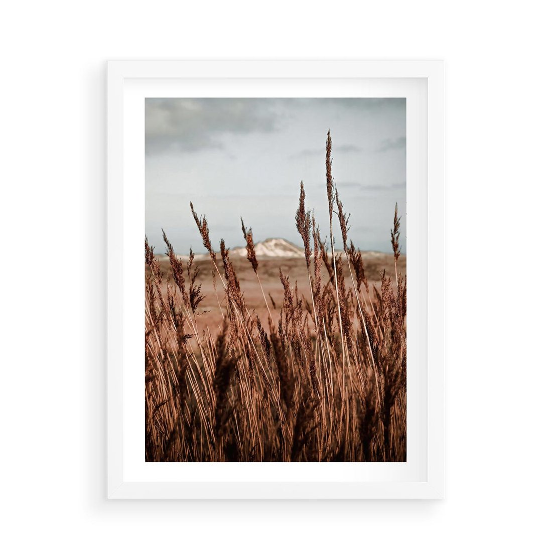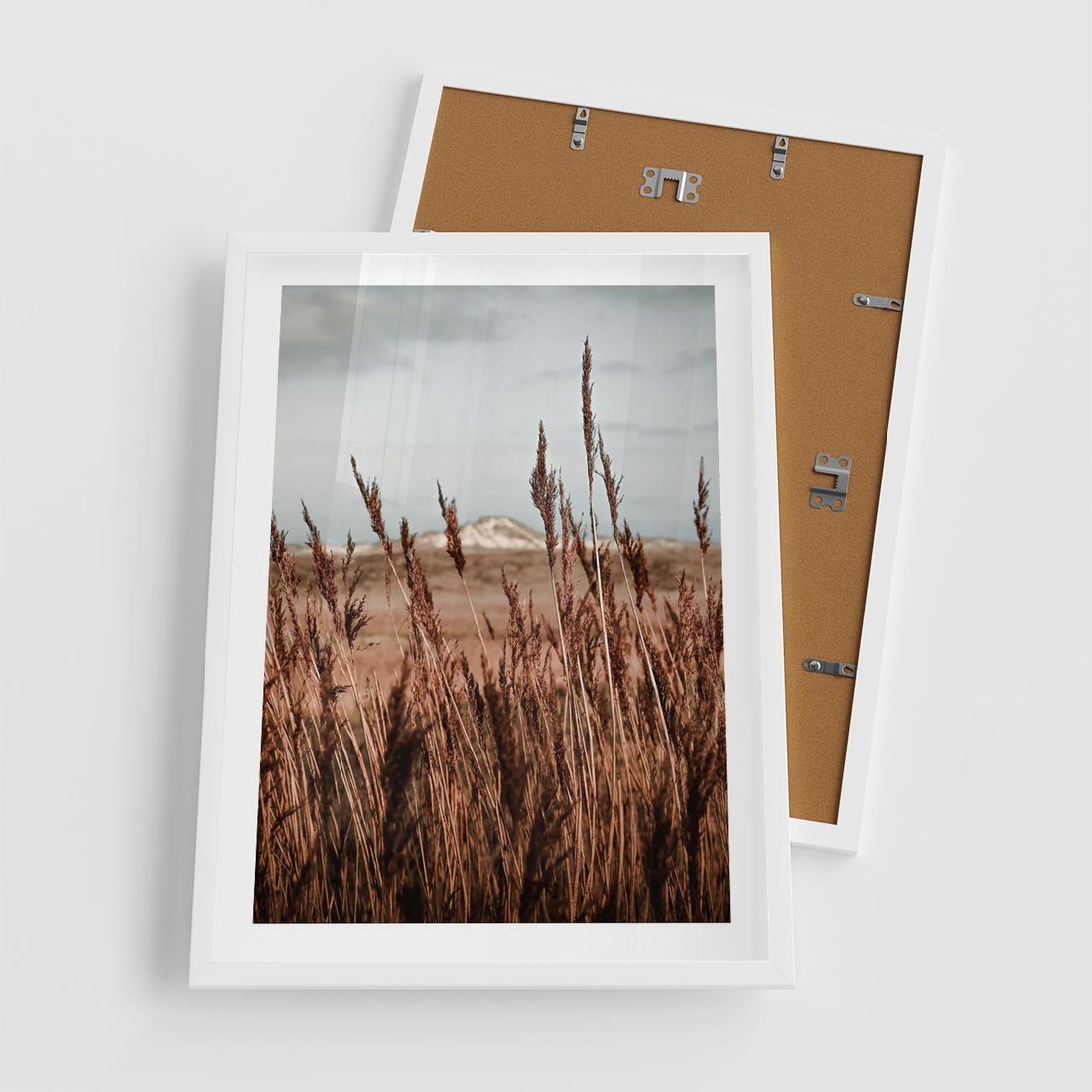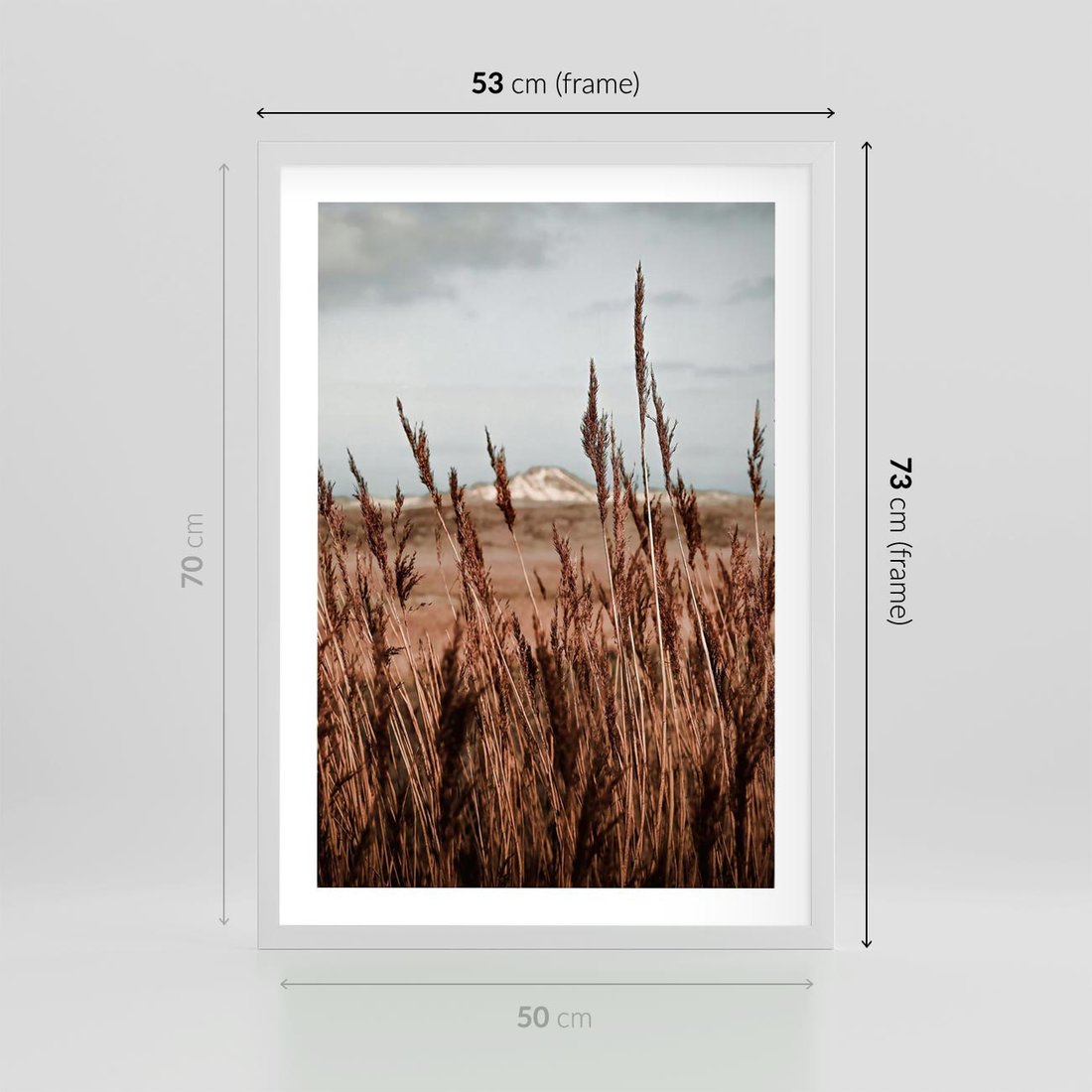 Plakat w ramie 50x70 - Wysokie Trawy w Górskim Krajobrazie - suche trawy, wysokie trawy - rama biała