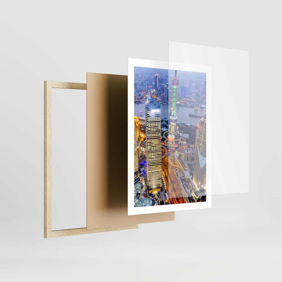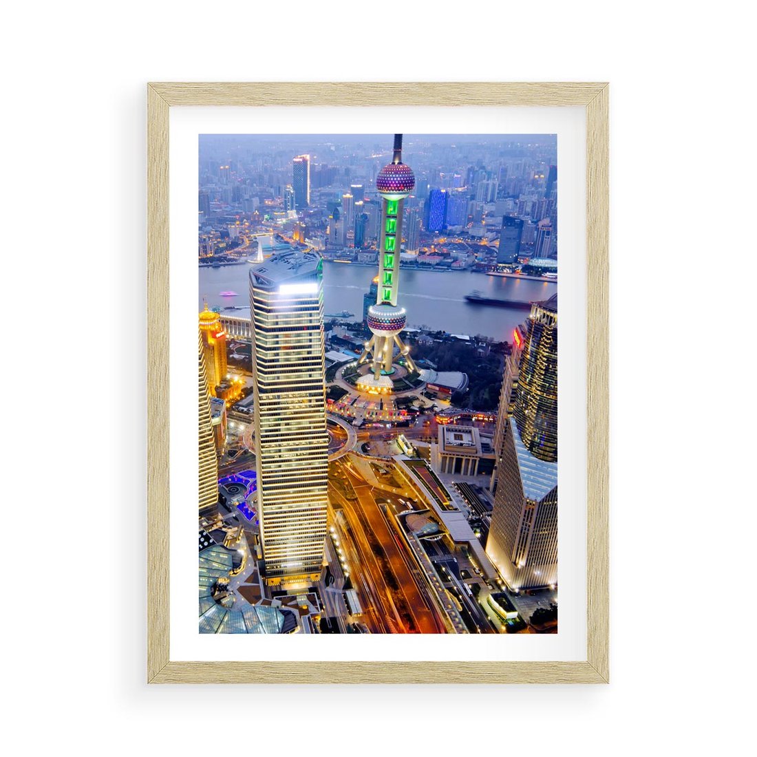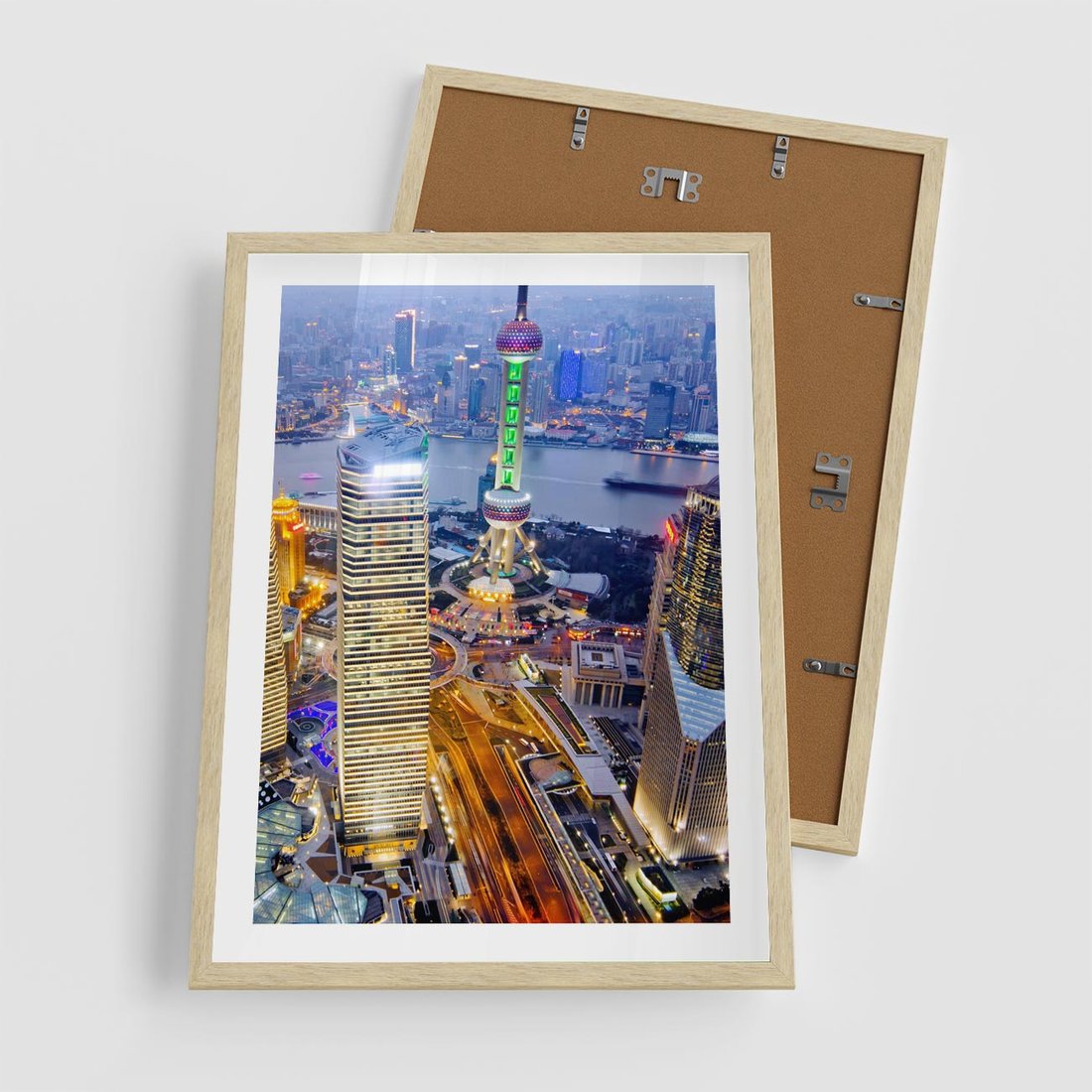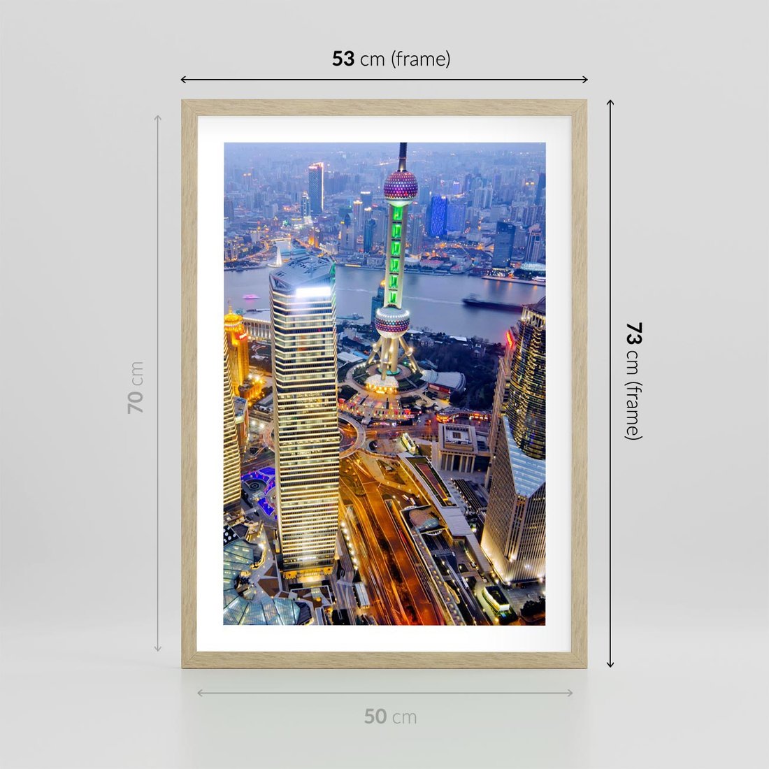 Plakat w ramie 50x70 - Wzgórza Mieściny - wieżowce, miasto - rama drewno