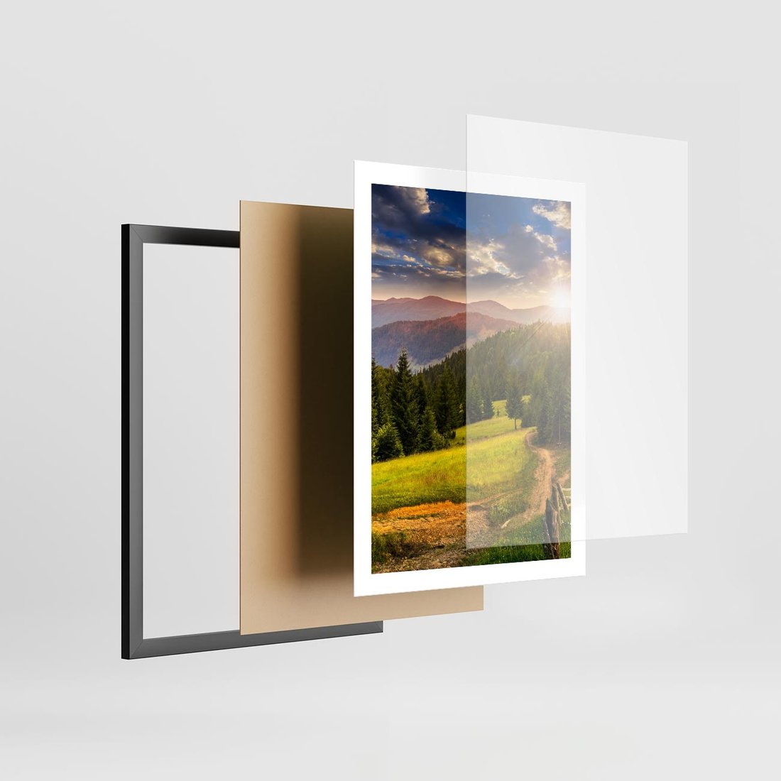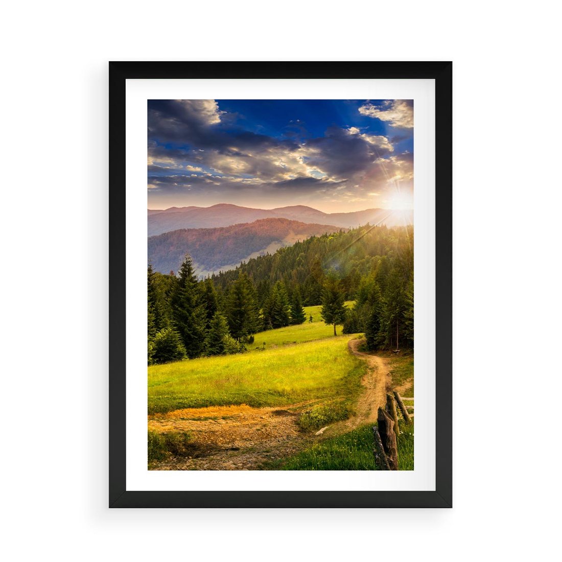 - Plakat w ramie 50x70 - Zachód słońca na łące