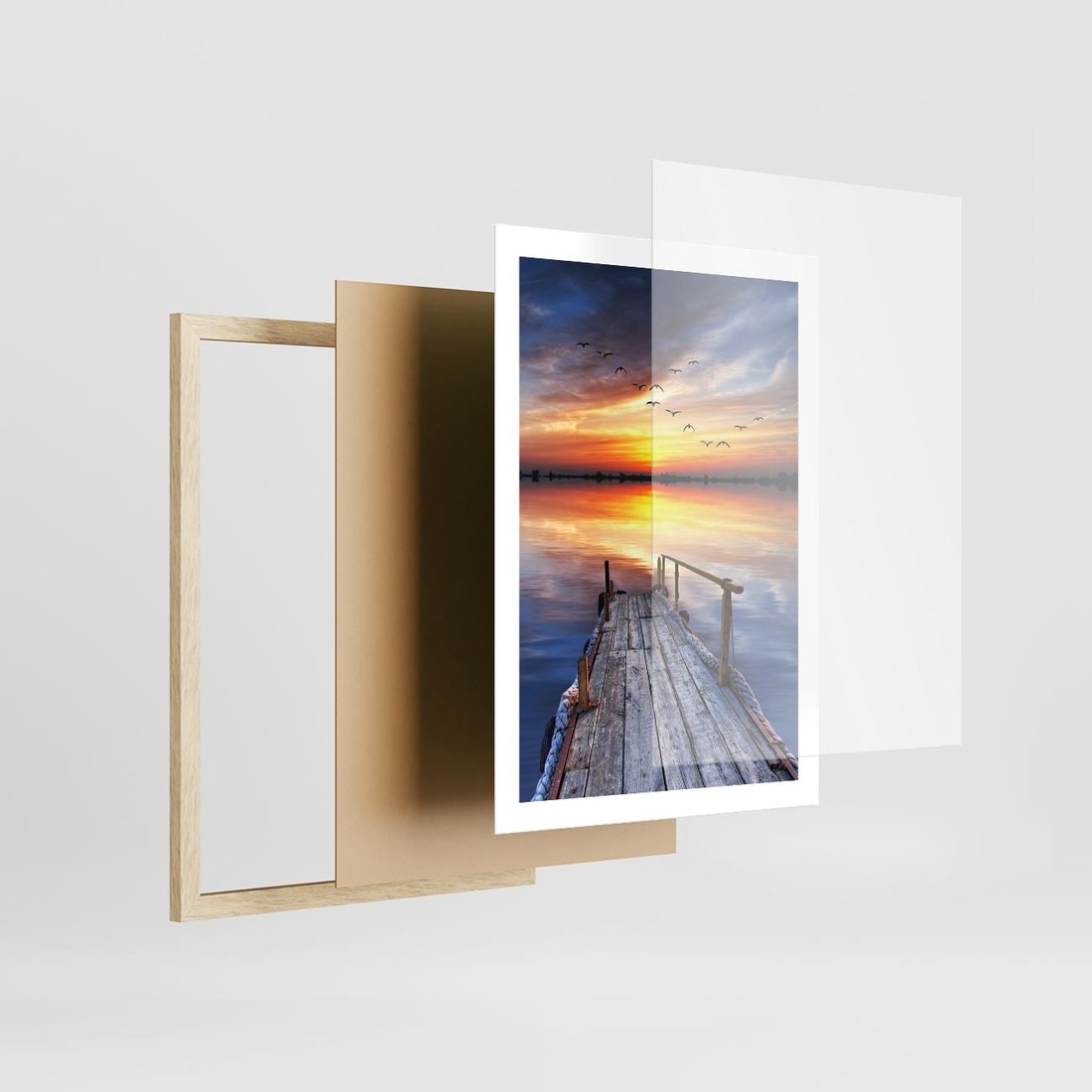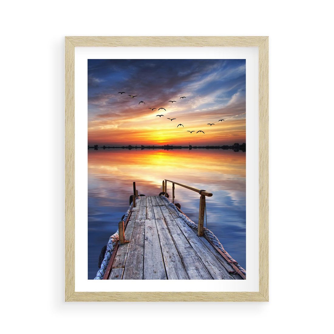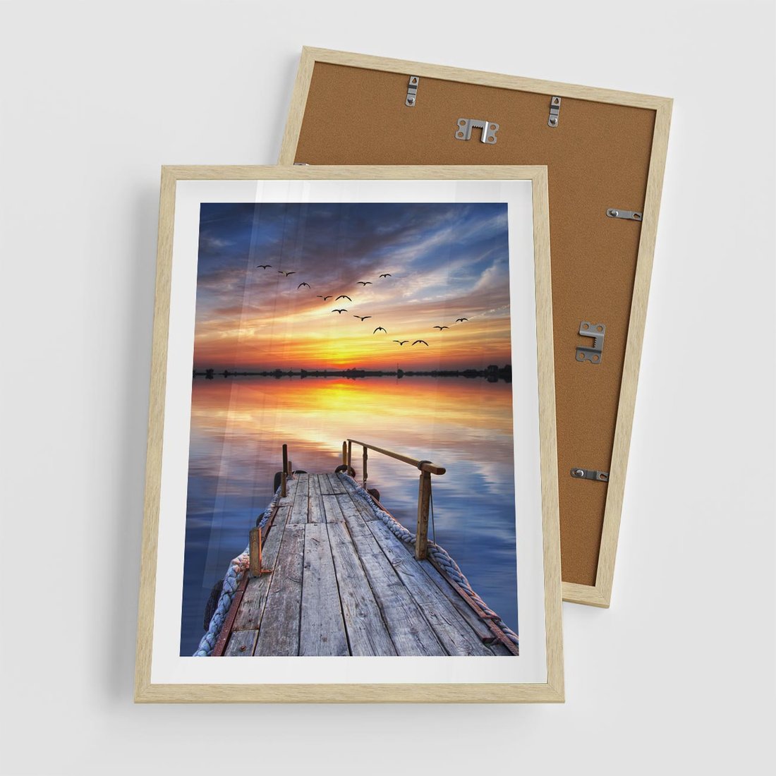Plakat w ramie 50x70 - Zachód słońca na pomostcie - pomost, zachód - rama drewno