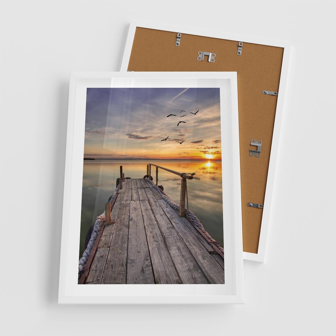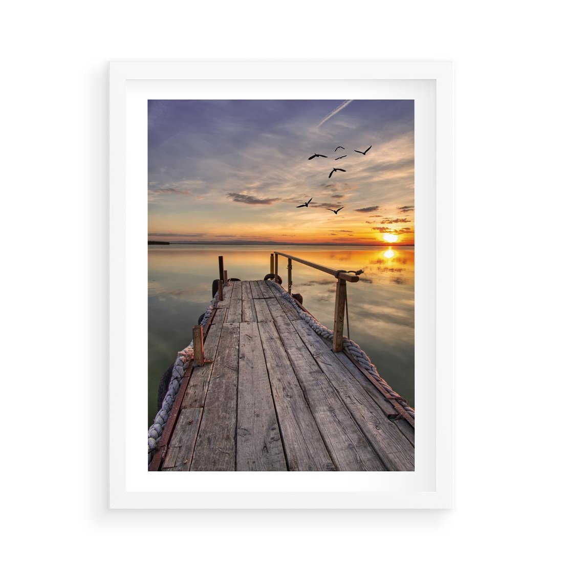 Plakat w ramie 50x70 - Zachód Słońca na Pomostcie - zachód, słońca - rama biała