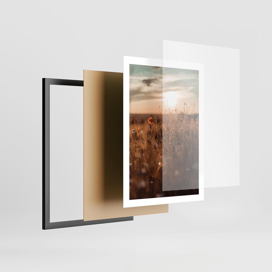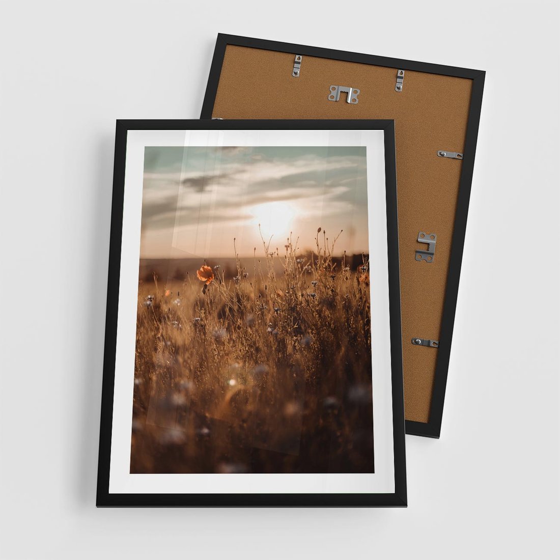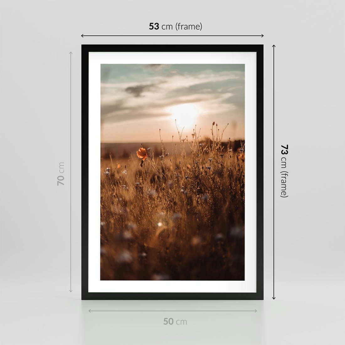- Plakat w ramie 50x70 - Zachwyt zachodem słońca na łące