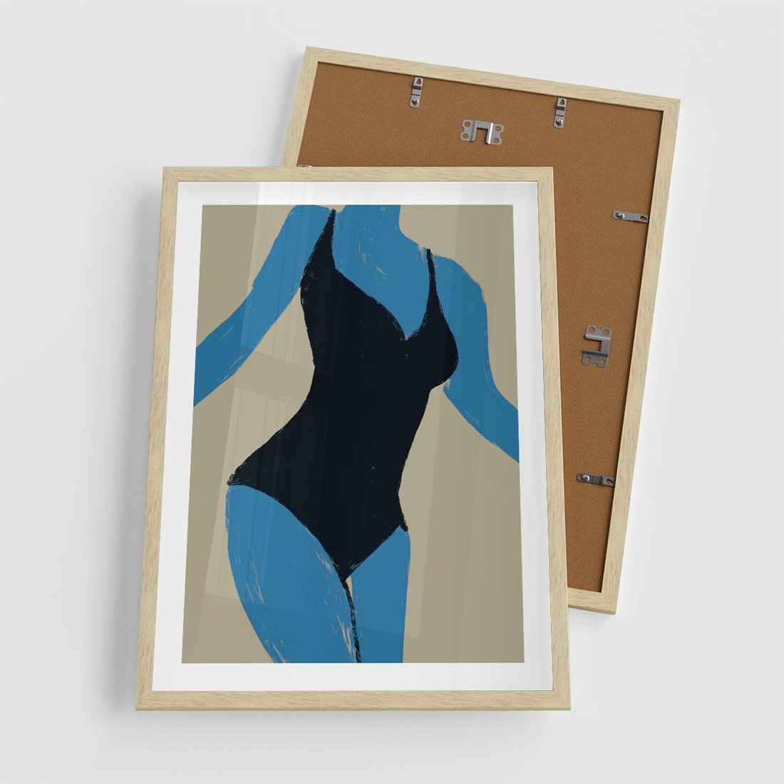 Nasz abstrakcyjny plakat to porywający przykład nowoczesnej sztuki, na którym wyrazista postać kobiety w stroju kąpielowym wyróżnia się na tle dynamicznych form i kolorów. Ta kompozycja emanuje energią i stylowym zmysłem, tworząc unikalną wizję piękna i wyrafinowanego designu. To idealny wybór dla tych, którzy pragną dodać do swojej przestrzeni artystycznego powiewu nowoczesności i ekscytującego charakteru.
