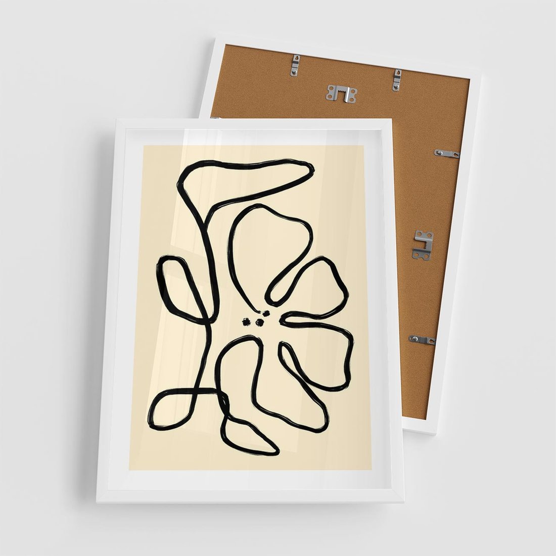 Nasza abstrakcyjna sztuka to subtelna kompozycja, przypominająca delikatny kwiat, oparta na kontrastujących czerni i bieli. W minimalistycznym stylu, każdy element ma swoje znaczenie, tworząc spokojną i elegancką całość. To dzieło sztuki oddające piękno w prostocie, doskonale wprowadzające do przestrzeni chwilę refleksji i harmonii.